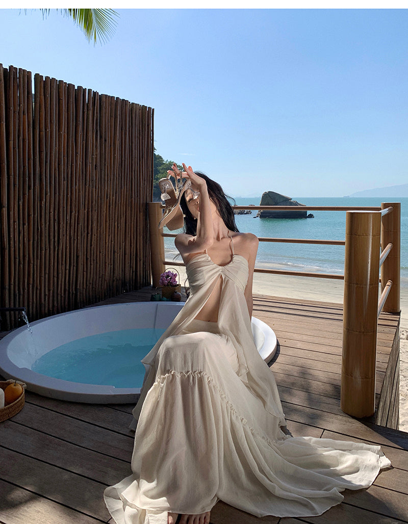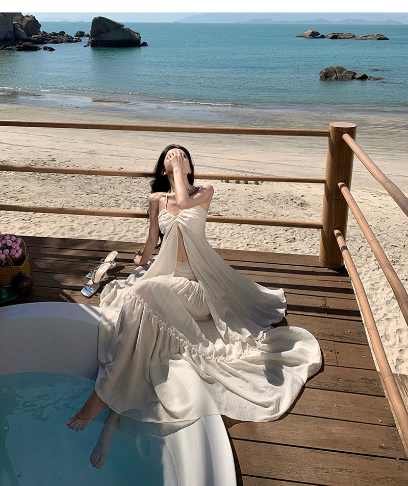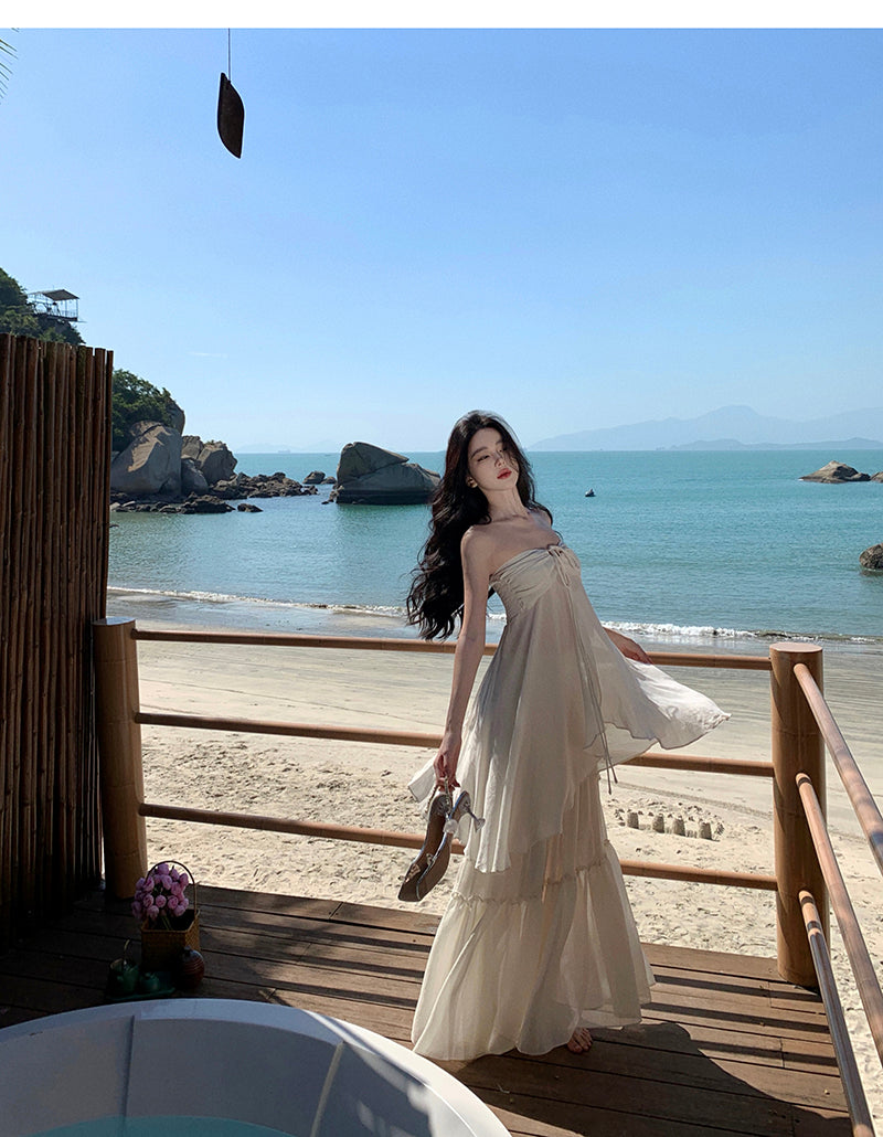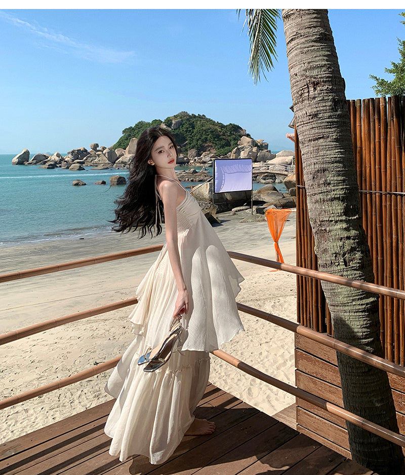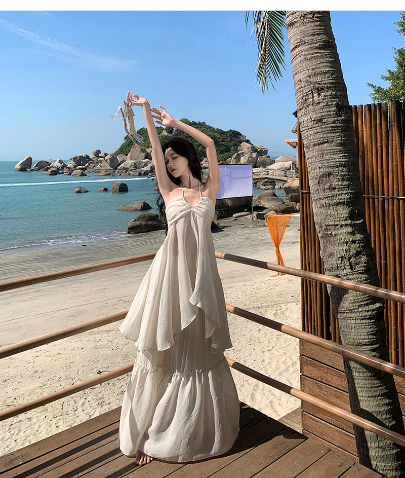Travel Flowy Dress with Sweetheart Neck Ruffled Edge Variable Strap Halter Dress AP0344