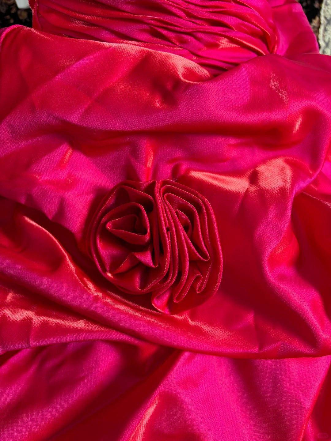 Stunning A-Line Formal Dresses Strapless Handmade Flowers Ruched Long Prom Dress AP2445