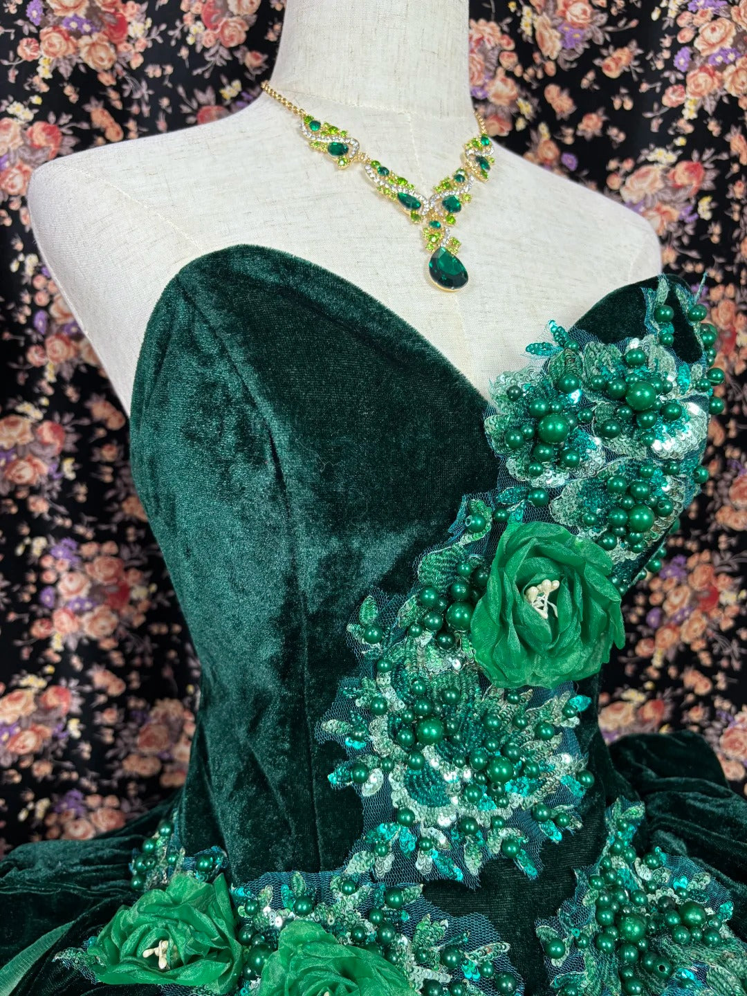 Dreamy Sweetheart Neck A-Line Formal Dresses Beaded Handmade Flowers Prom Dress AP2439