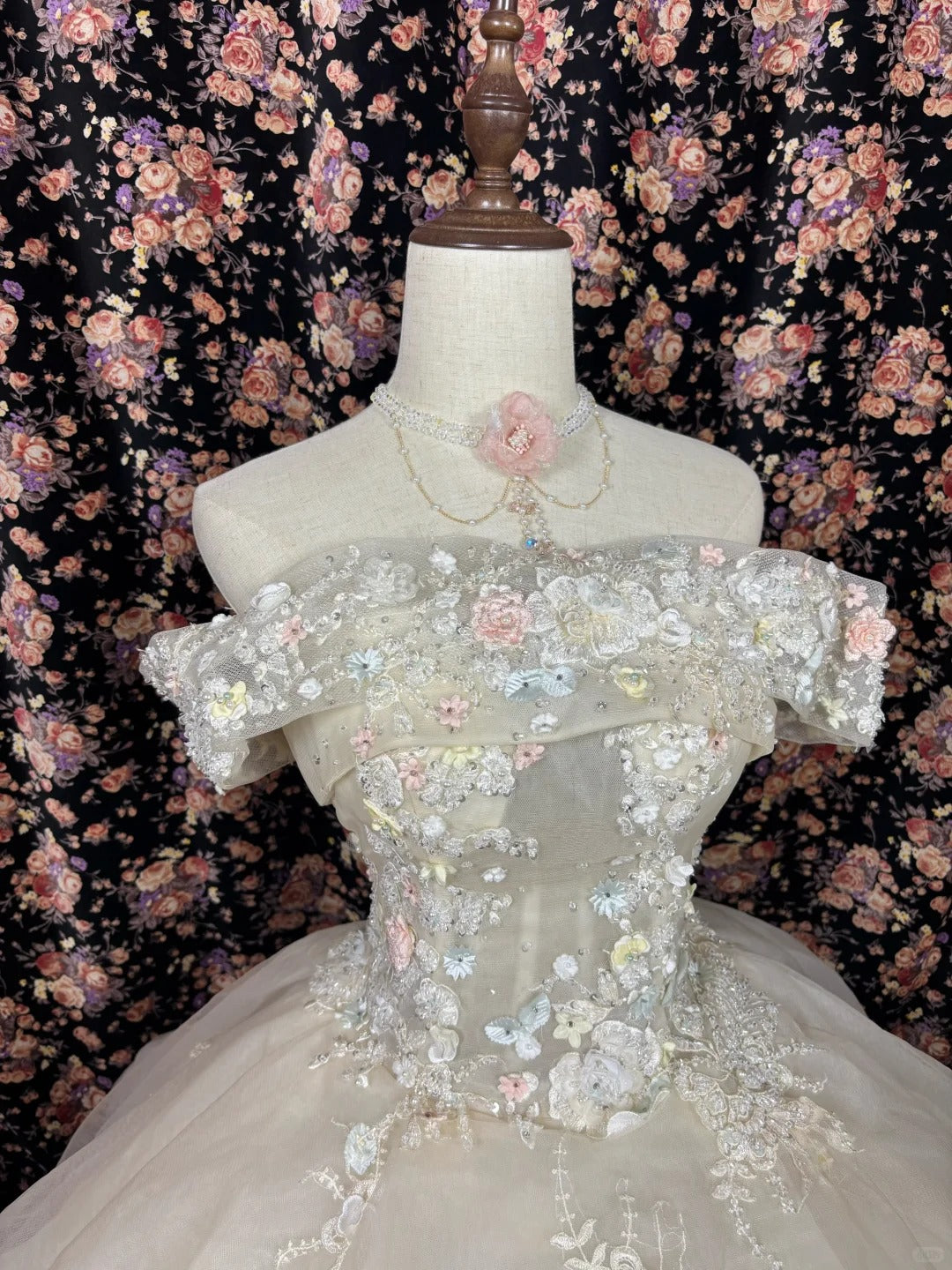 Dramatic Off-Shoulder A-Line Formal Dresses Tiered Tulle Appliques Sequins Beaded Prom Dress AP2488