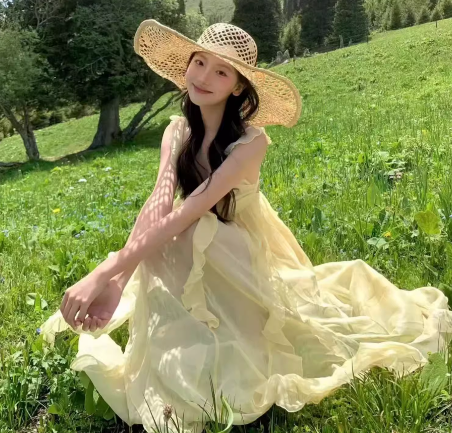 Ethereal Off-Shoulder Maxi Dress Seaside Photo Outfit Flowy Romantic Spaghetti Strap Long Dress AP0431