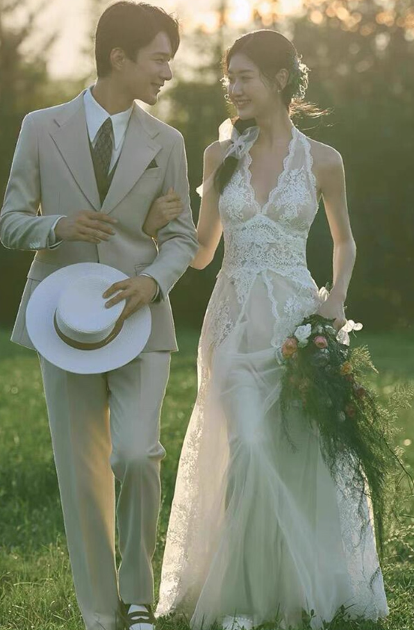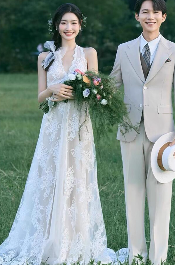 Chic Texture Lace Floral Maxi Dress Niche Applique Tulle Layered Halter Prom Dress AP0798