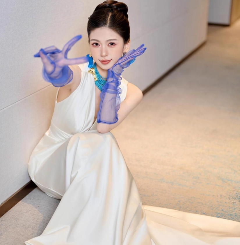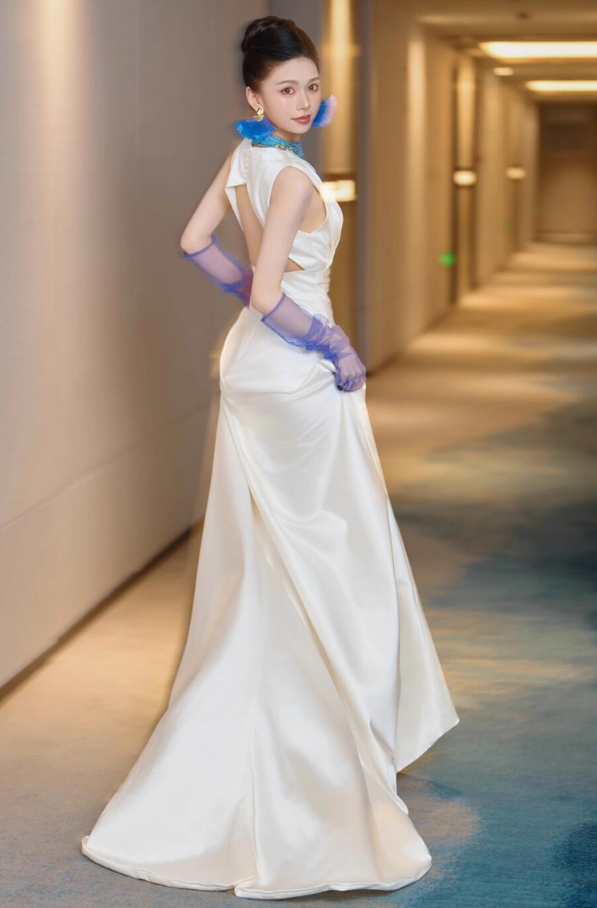Niche Soft Lustrous Satin Maxi Feast Dress Open-Back V-Neck Halter Prom Dress AP0902