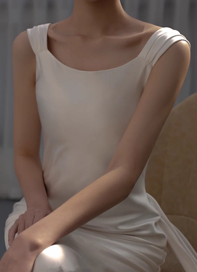 Graceful Lustrous Satin Tulle Splicing Bridal Dress Off-Shoulder Applique Mermaid Wedding Dress AP0990