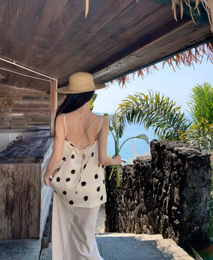 Vogue Two-Piece Set Polka Dot Design Maxi Dress Charming Sheath Spaghetti Strap Mermaid Long Dress AP1323