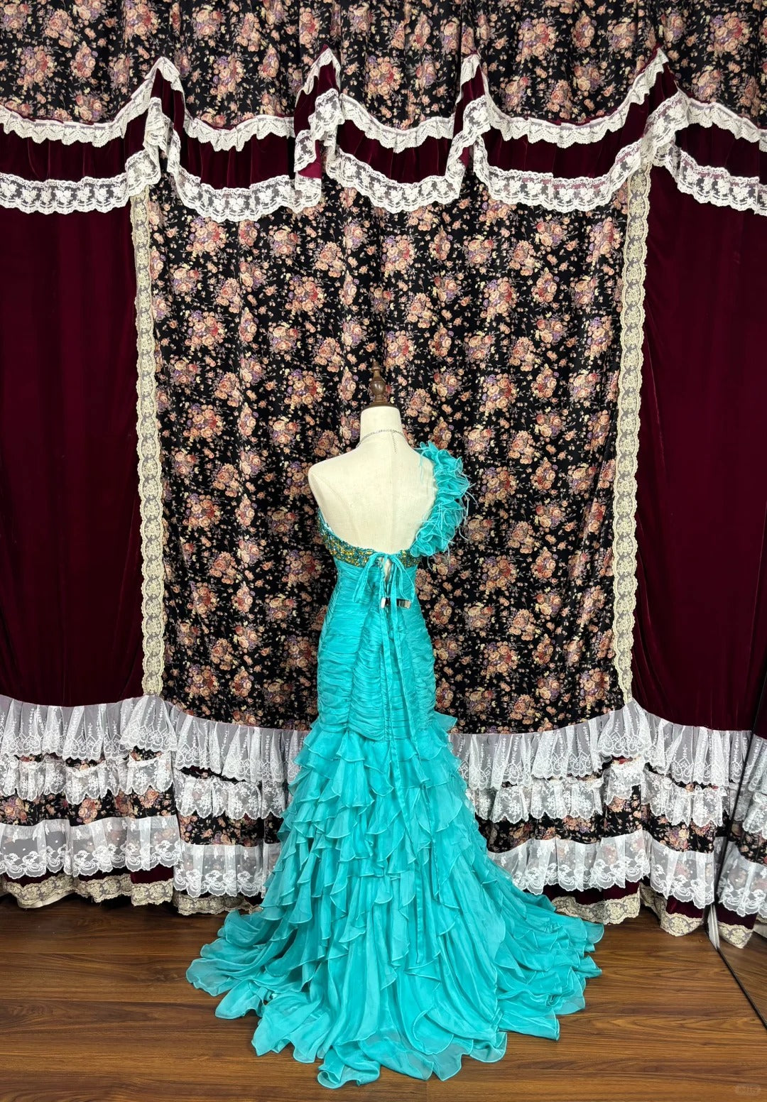 Artistic Mermaid One-Shoulder Pleated Evening Gowns Crystals Sequins Beading Prom Dress AP2487