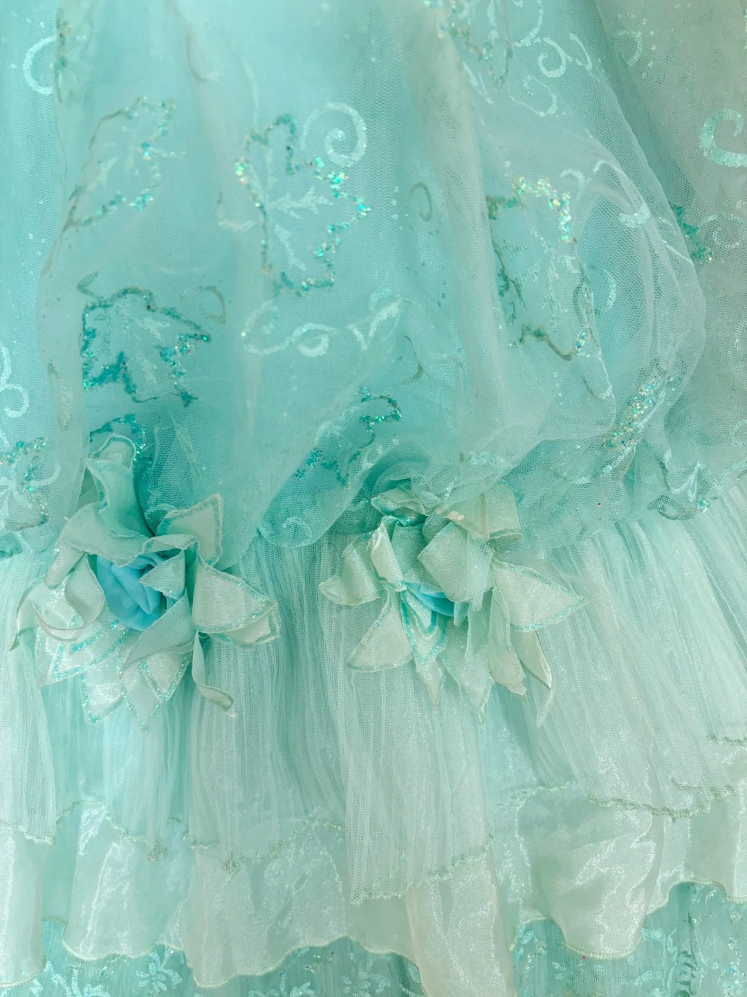 Ethereal Halter Neck A-Line Evening Gowns Sequins Lace Handmade Flowers Tiered Prom Dress AP2889
