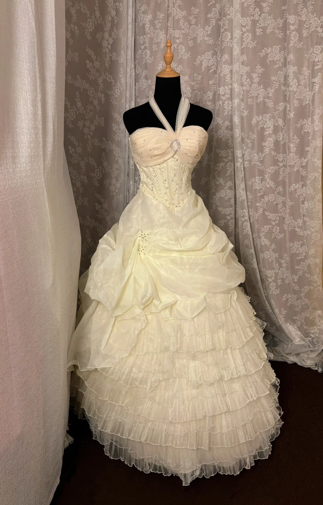 Attractive Halter Neck A-Line Evening Gowns Beads Sequins Tulle Tiered Prom Dress AP3019