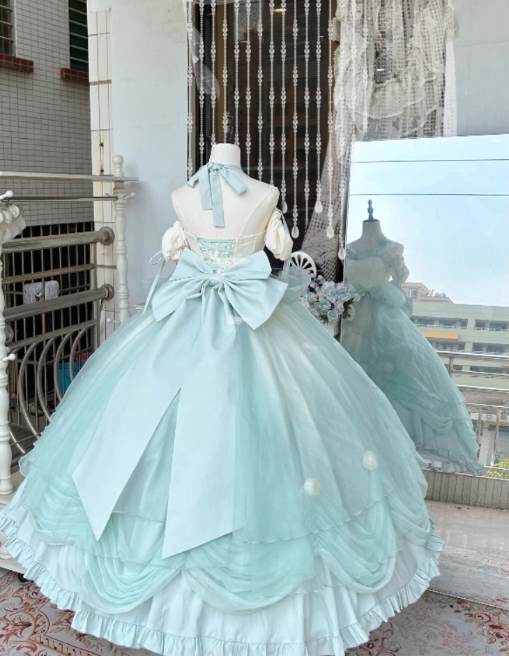 Alluring Halter Neck A-Line Evening Gowns Bows Handmade Flowers Prom Dress AP3262