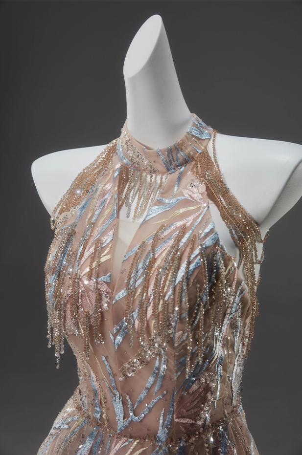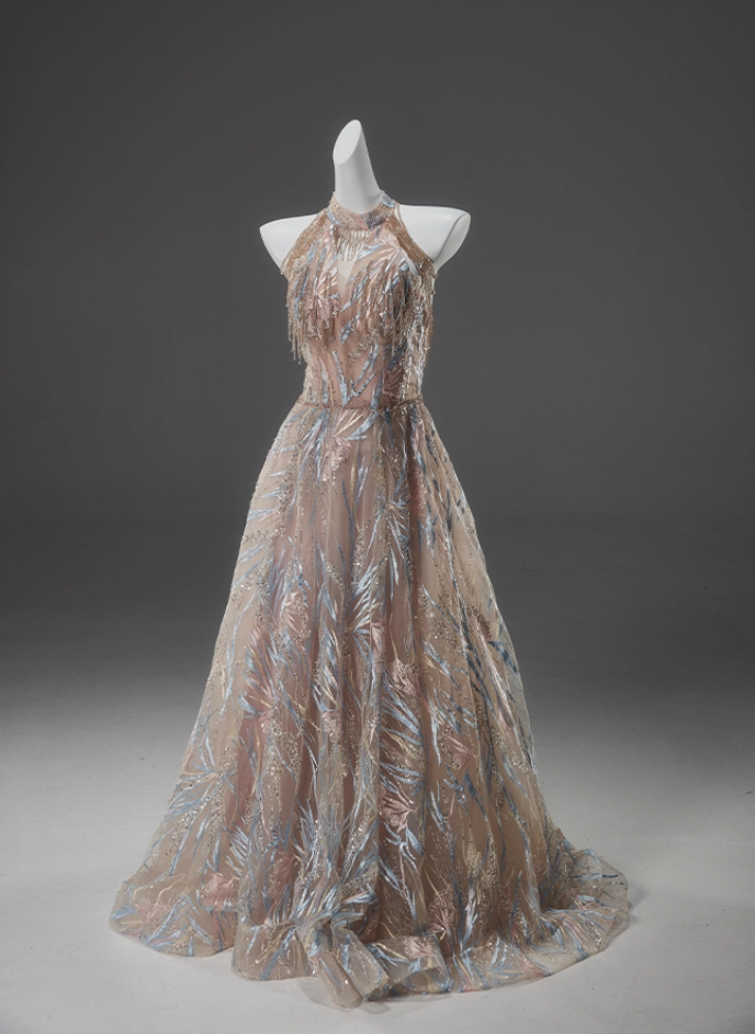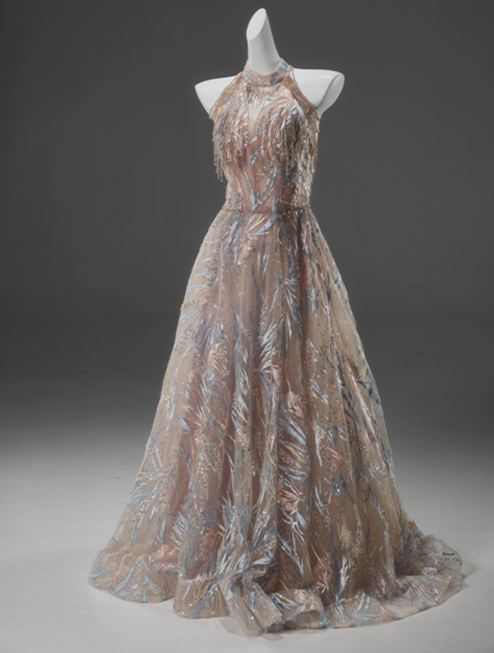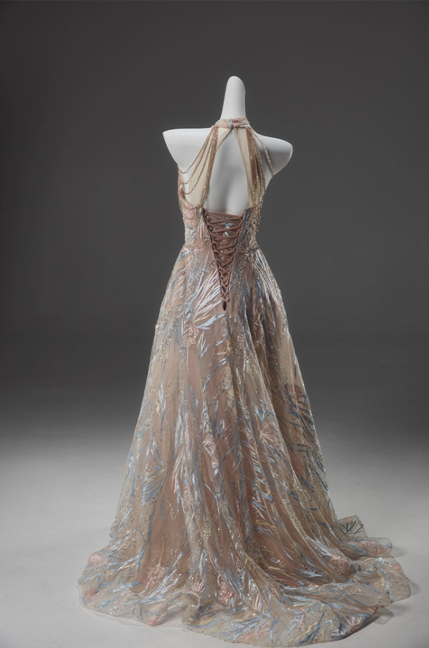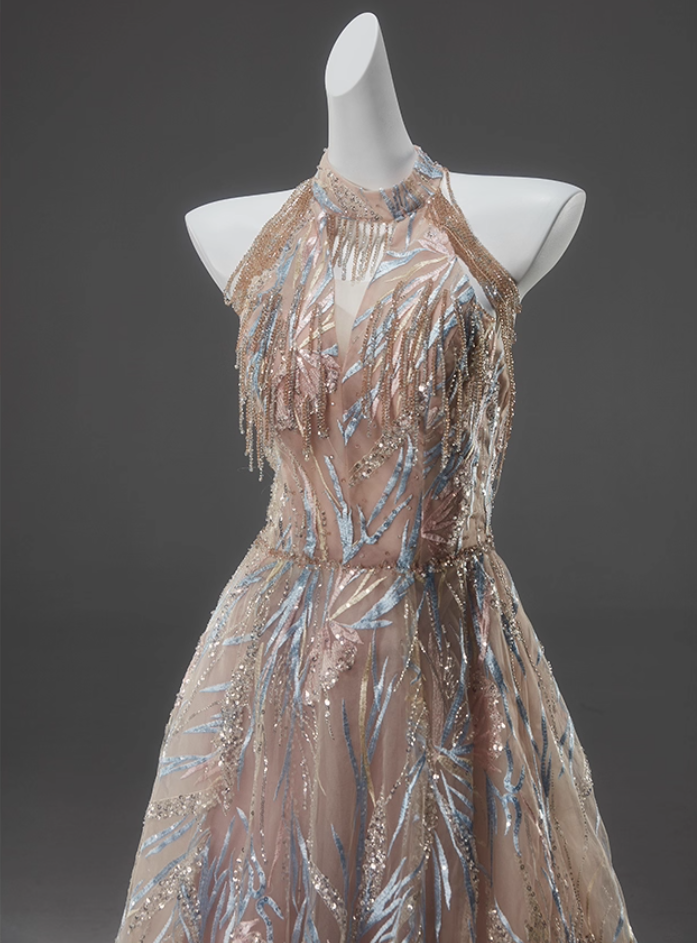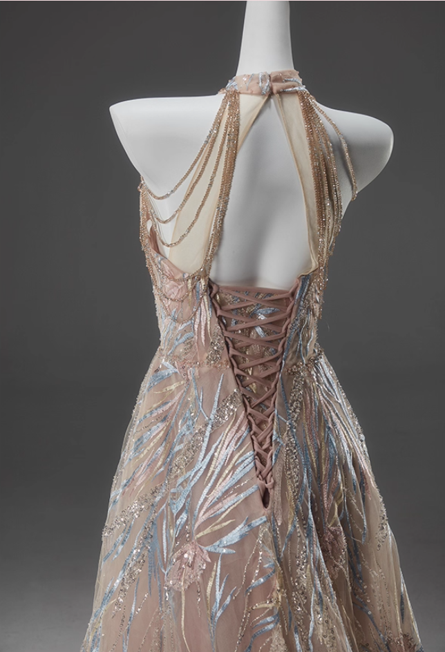 Bling Halter Neck A-Line Sweet 16 Gowns Glamorous Sequins Beading Embroidery Prom Dress AP3914