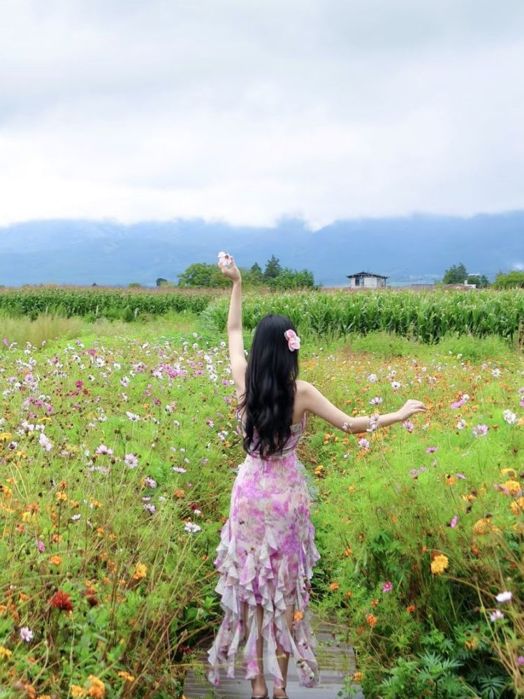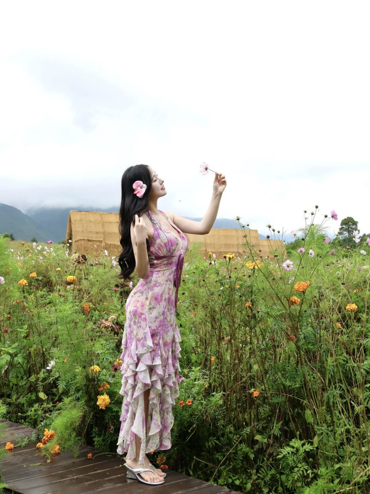 Gorgeous Halter Neck Sheath Floral Print Maxi Dress Alluring Ruffles Slit Cinched-Waist Long Dress AP4036