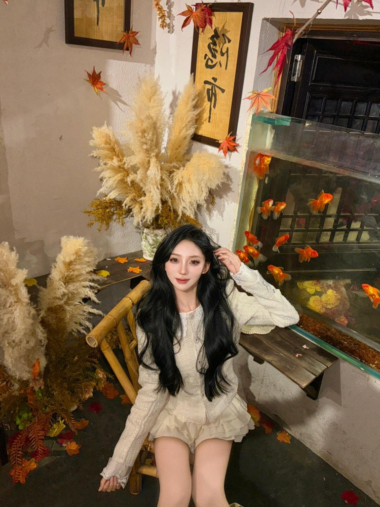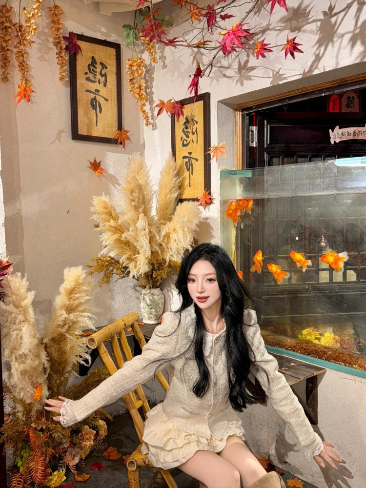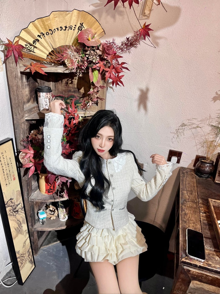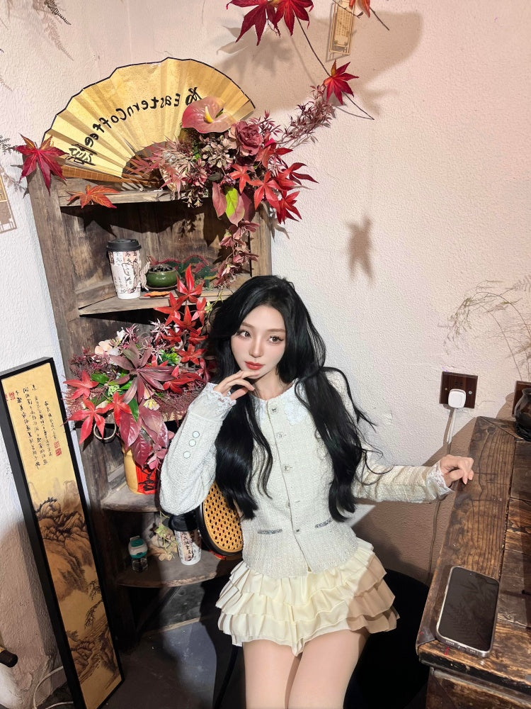 Adorable Long Sleeve Jewel Neck Mini Skirt Refined 2-Piece Set A-Line Tiered Short Dress AP3980