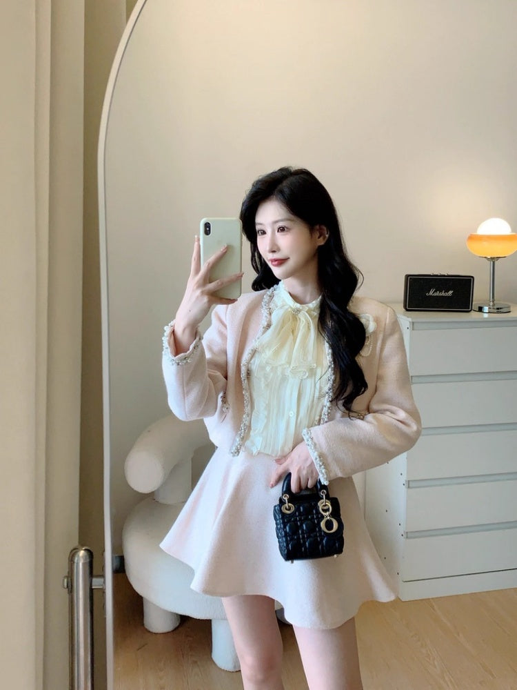 Maximalism Jewel Neck Long Sleeve Beaded Mini Skirt French-Inspired 2-Piece Set A-Line Short Dress AP3994