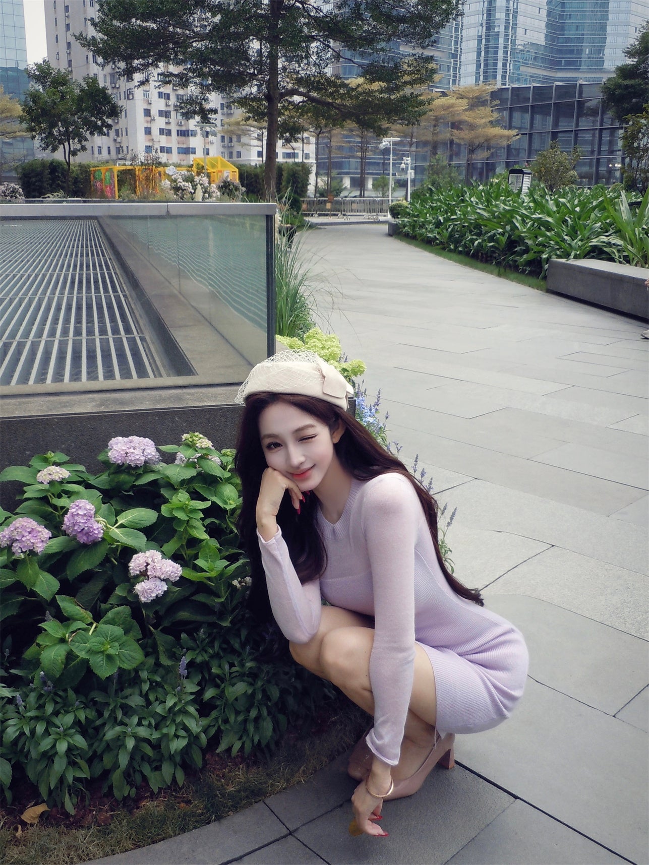 Trendy Bodycon Knitted Jewel Neck Mini Dress Sweet Long Sleeve Minimalism Short Dress AP3644