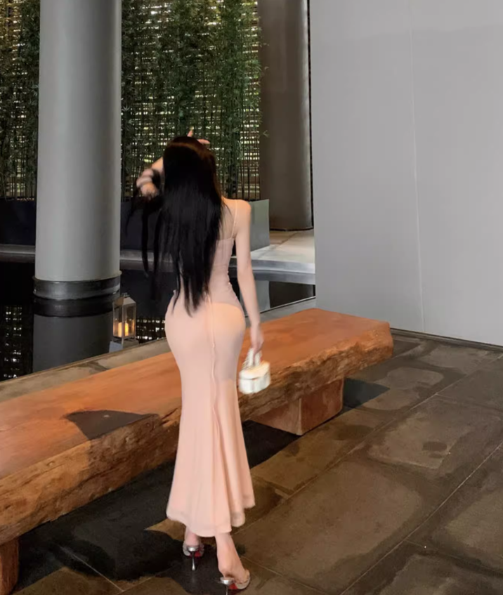 Elegant Y2K Fitting Flattering Maxi Dress Chic Spaghetti Strap Bodycon Long Dress AP0614