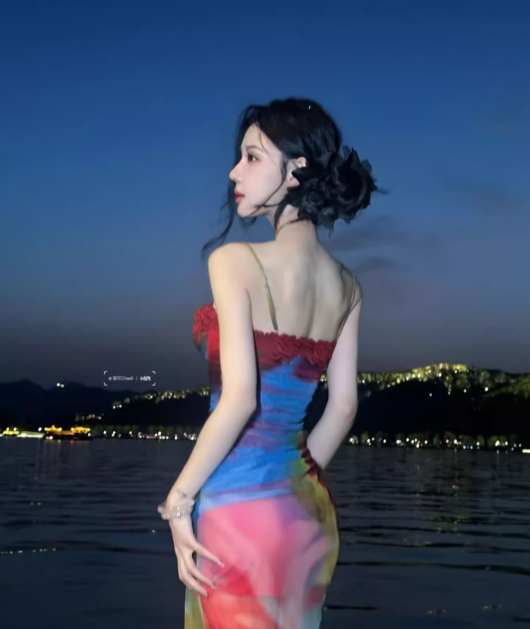 Tulle Trimmed Soft Fabric Maxi Dress Hot Girls Spaghetti Strap Vibrant Tie-Dye Long Dress AP0628