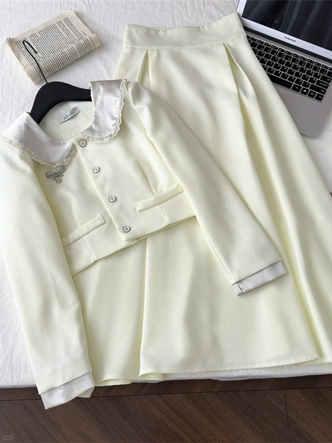 Wonderful 2-Piece Set Long Sleeve Maxi Dresses French Inspired Office Outfit Square Neck A-Line Long Dress AP4079
