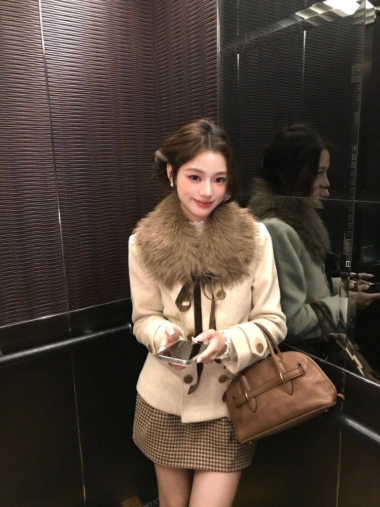 Modern Long Sleeve Sheath Plaid Mini Skirt Vintage V Neck 2-Piece Set Short Dress AP3991