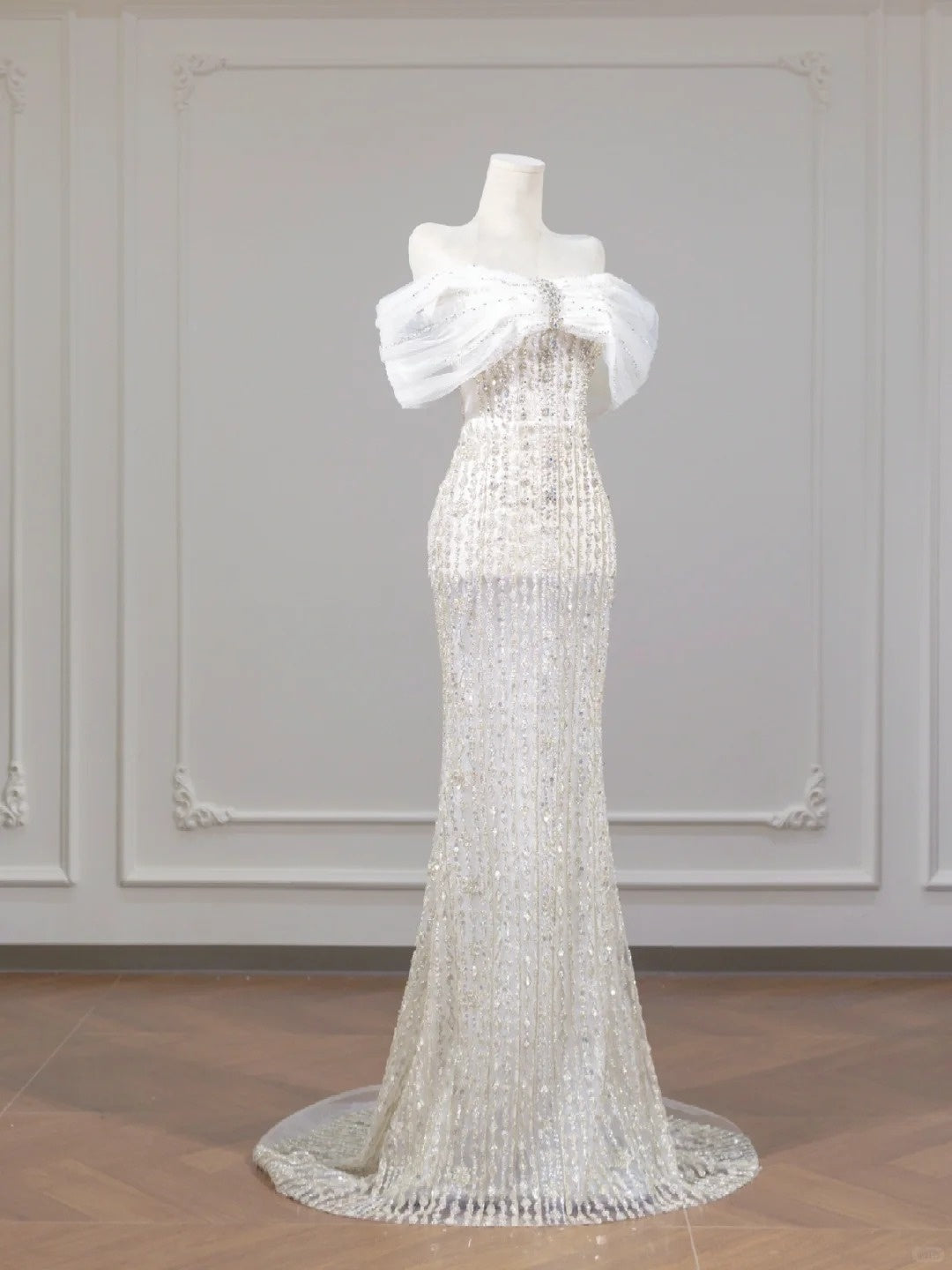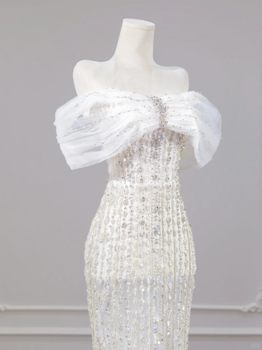 Gorgeous Mesh Off-Shoulder Beading Mermaid Glittering Crystals Prom Dress AP2256