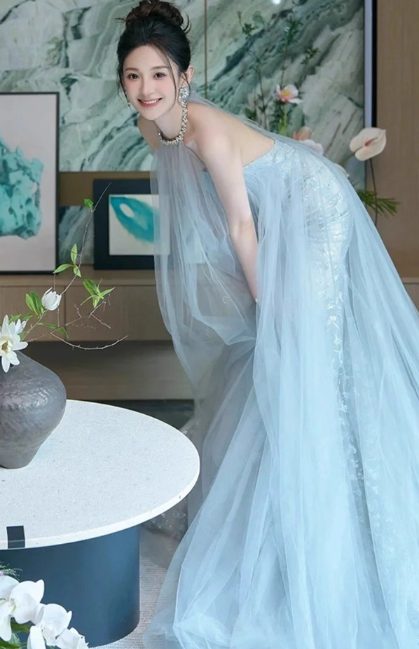 Cute Tulle Overlay Applique Lining Maxi Dress Sweet 15 Ethereal Halter Prom Dress AP0932