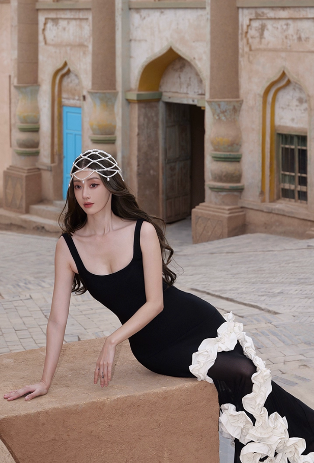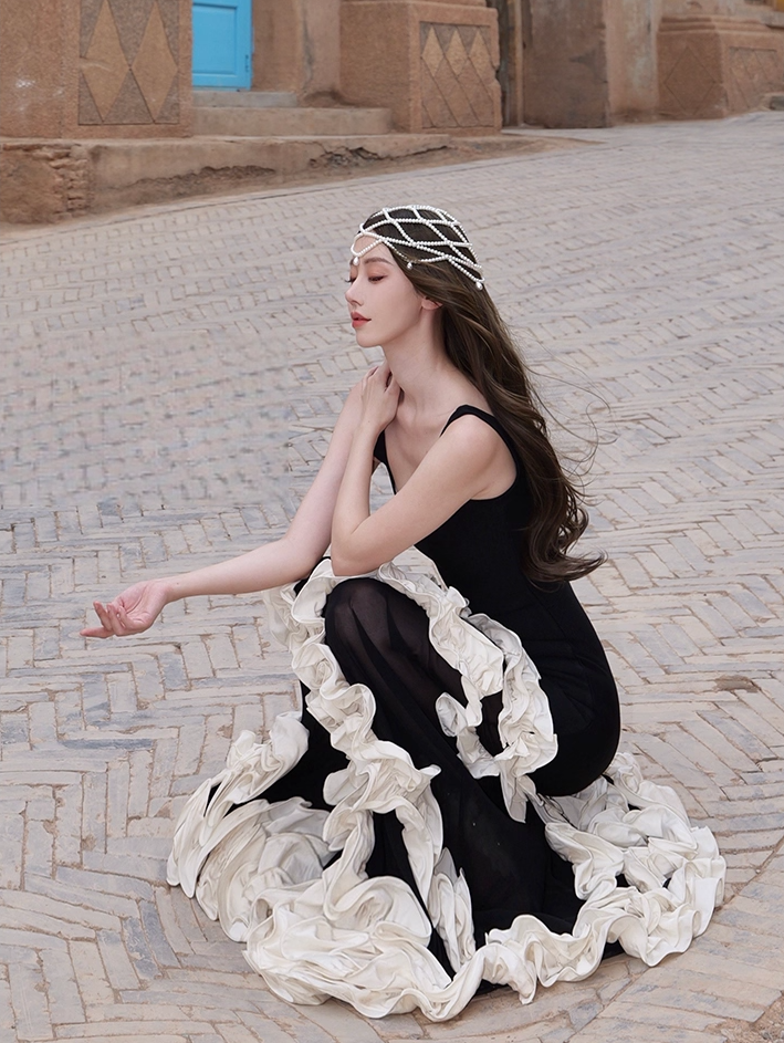 French Style Ruffles Trim Mermaid Maxi Dress Evening Parties Square Neck Long Dress AP3299