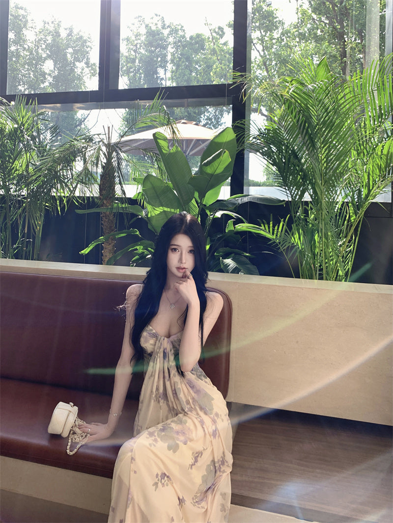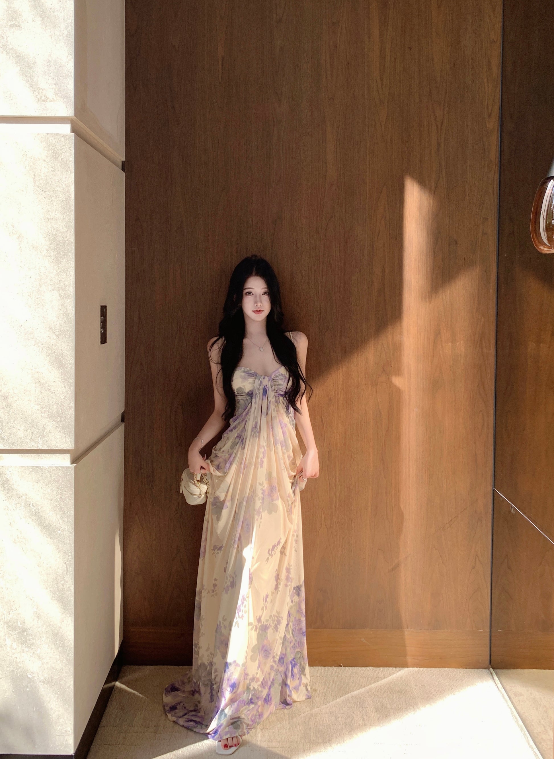 Dreamy Floral Print Sheath Spaghetti Strap Maxi Dress Graceful Draped Loose Fit Long Dress AP3302