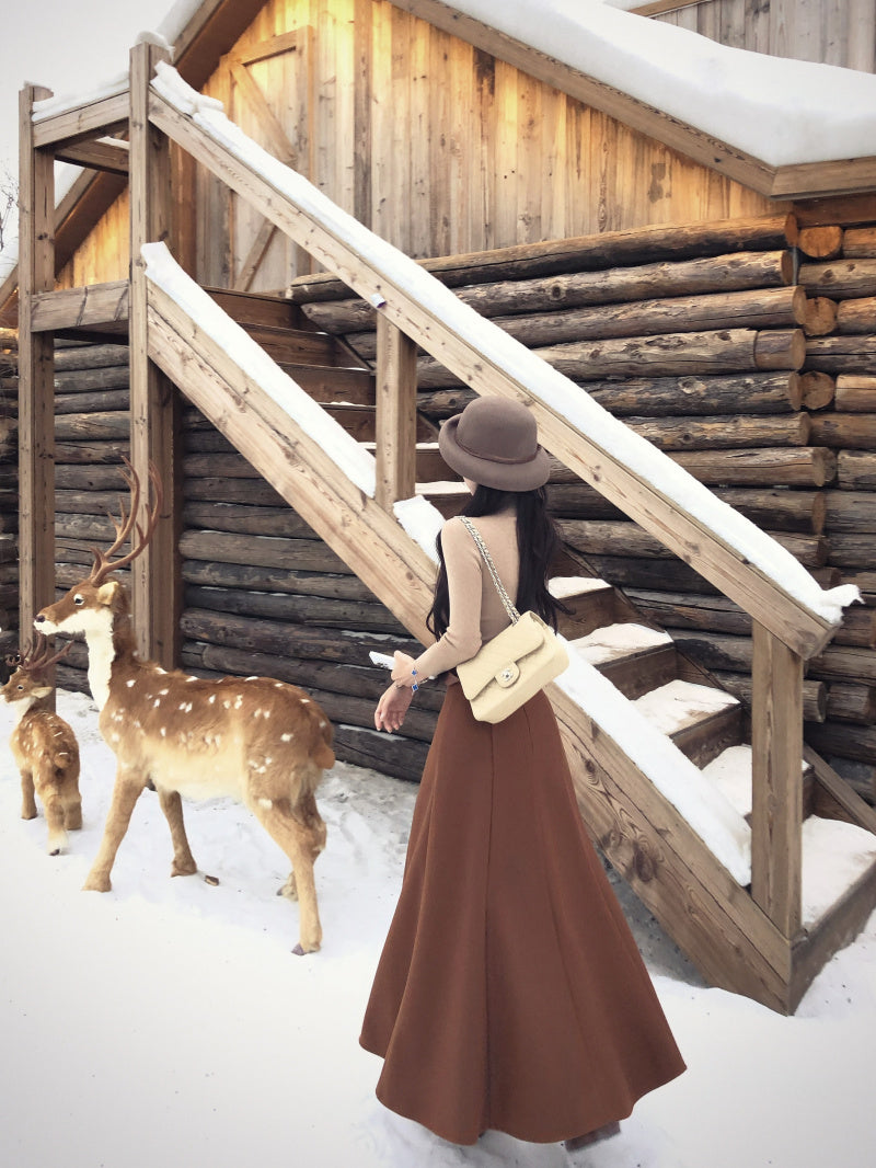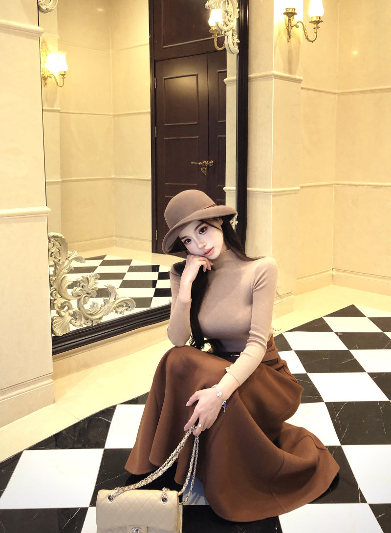 Cute 2-Piece Set High Collar Maxi Dresses Retro A-Line Long Sleeve Long Dress AP3826