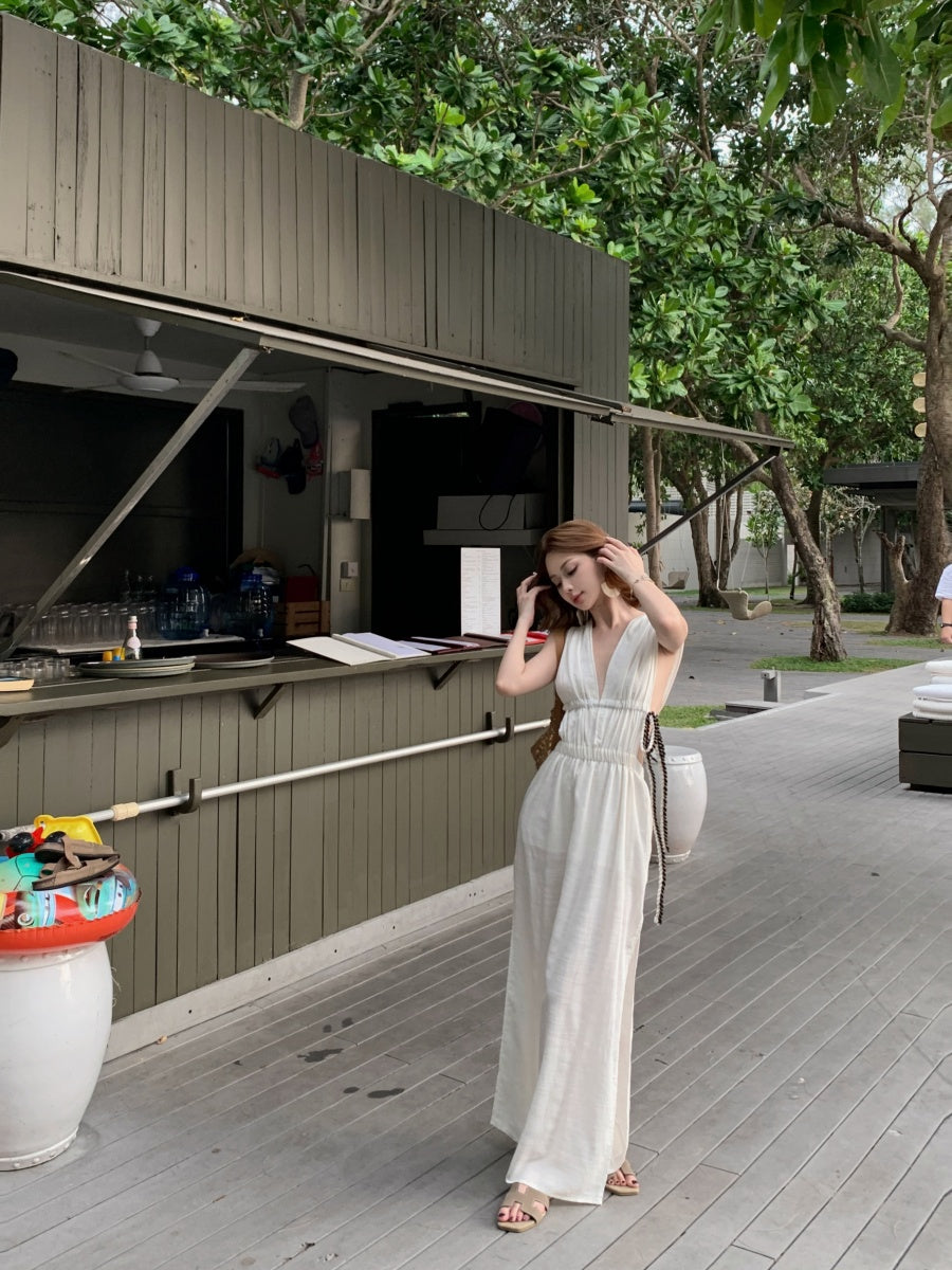 Dramatic Sheath V-Neck White Maxi Dresses Unique High-Slit Cinched-Waist Cutout Long Dress AP3439