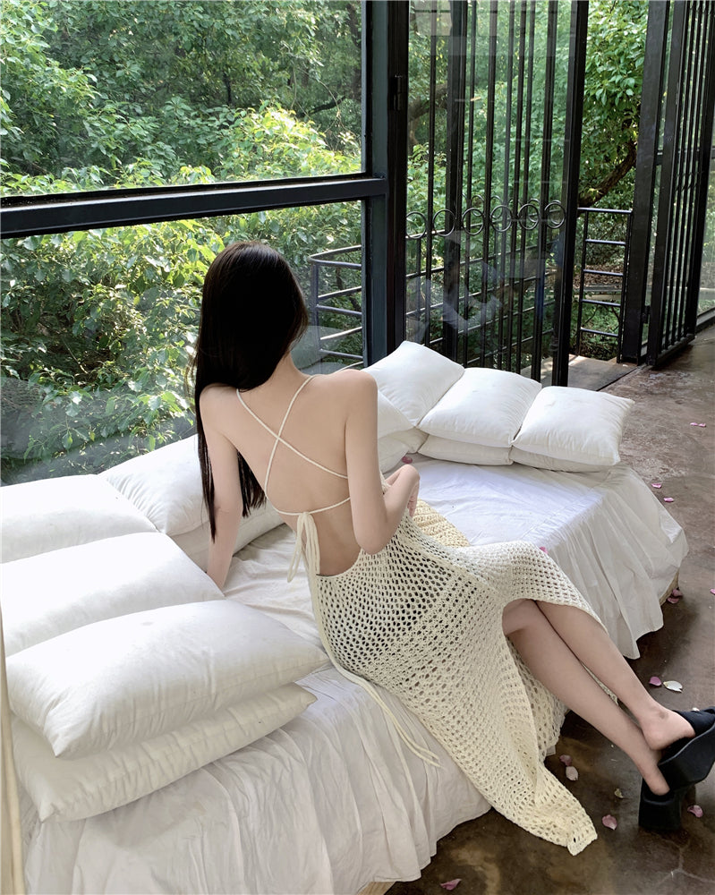 Dramatic Mermaid Vacays OOTD Crisscross Back Maxi Dress Alluring Spaghetti Straps Bikini Cover-Up Cutout Long Dress AP3577