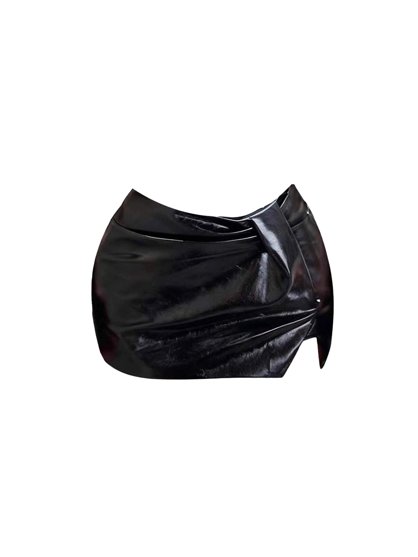 Glam Leopard Bodice 2-Piece Set Sheath Leather Mini Skirt Sparkly Sequins Accent Strapless Short Dress AP4102