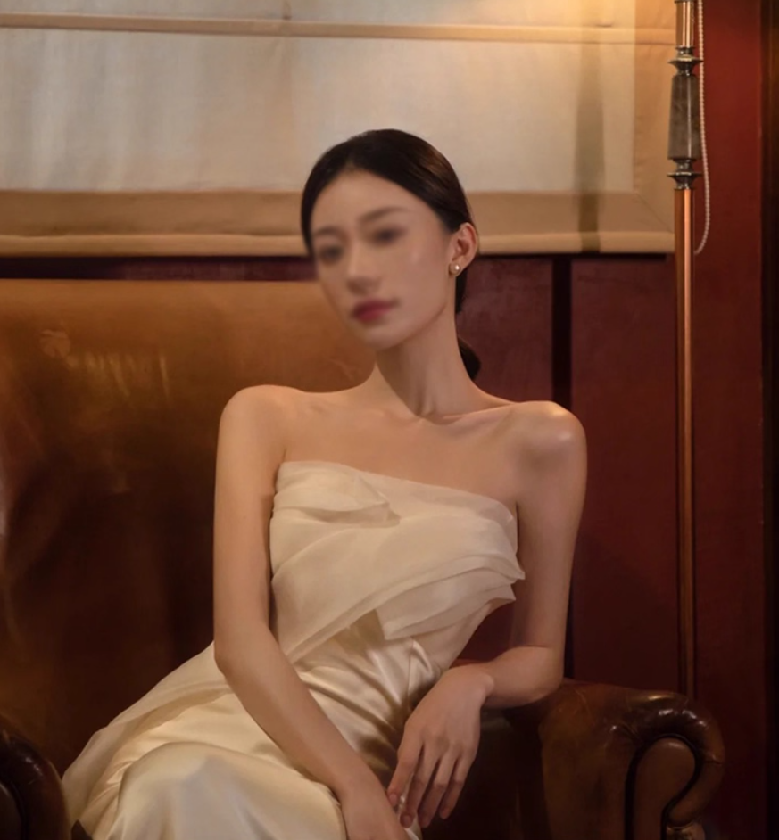 Exquisite Champagne Tulle Trimmed Satin Mermaid Dress Cinched-Waist Strapless Prom Dress AP0989