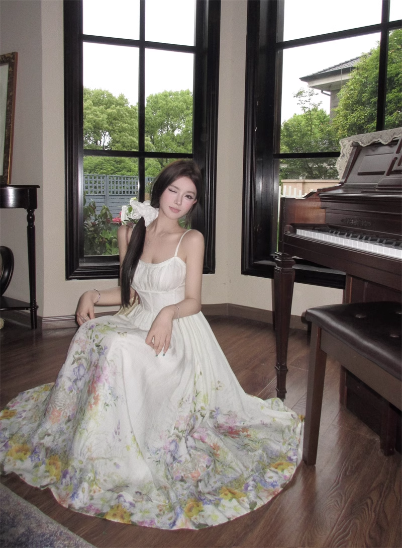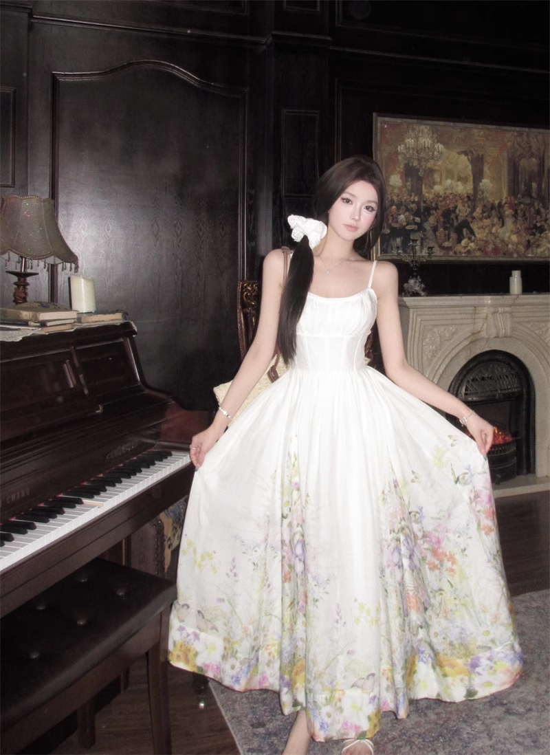 New Floral Design Simple Elegant Casual Spaghetti Strap Dress AP0265