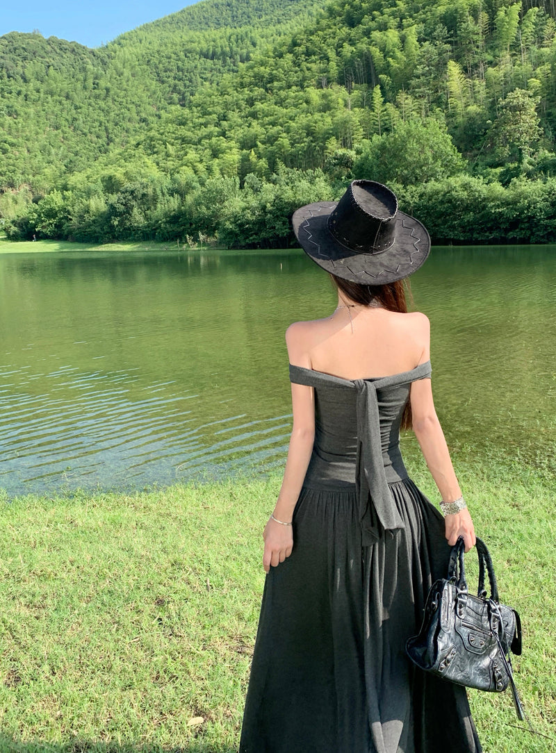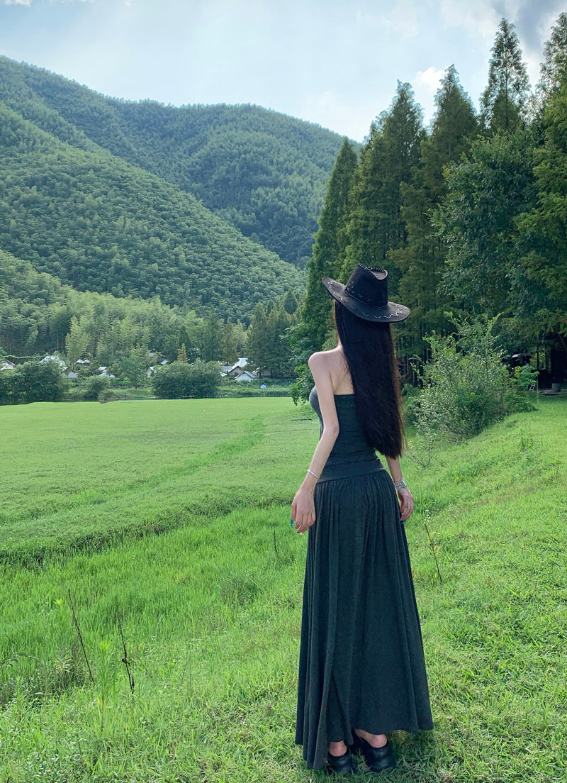 New Tendency Strapless A-Line Maxi Dress Alluring Tie-Front Gray 2-Piece Set Long Dress AP3291