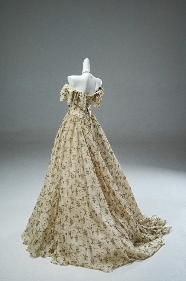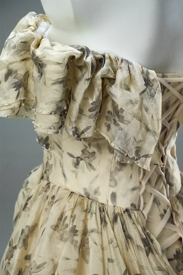 Fantastic Off-Shoulder A-Line Floral Print Evening Gowns Attractive Ruffles Beads Handmade Flowers Prom Dress AP3889