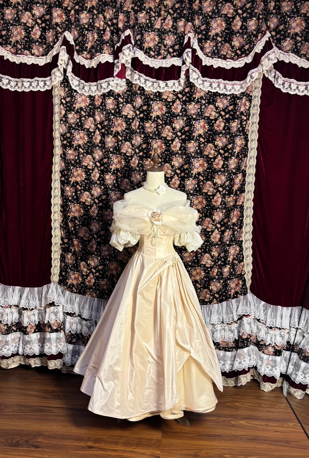 Glamorous Off-Shoulder A-Line Formal Dresses Handmade Flowers Beading Pearls Prom Dress AP2610