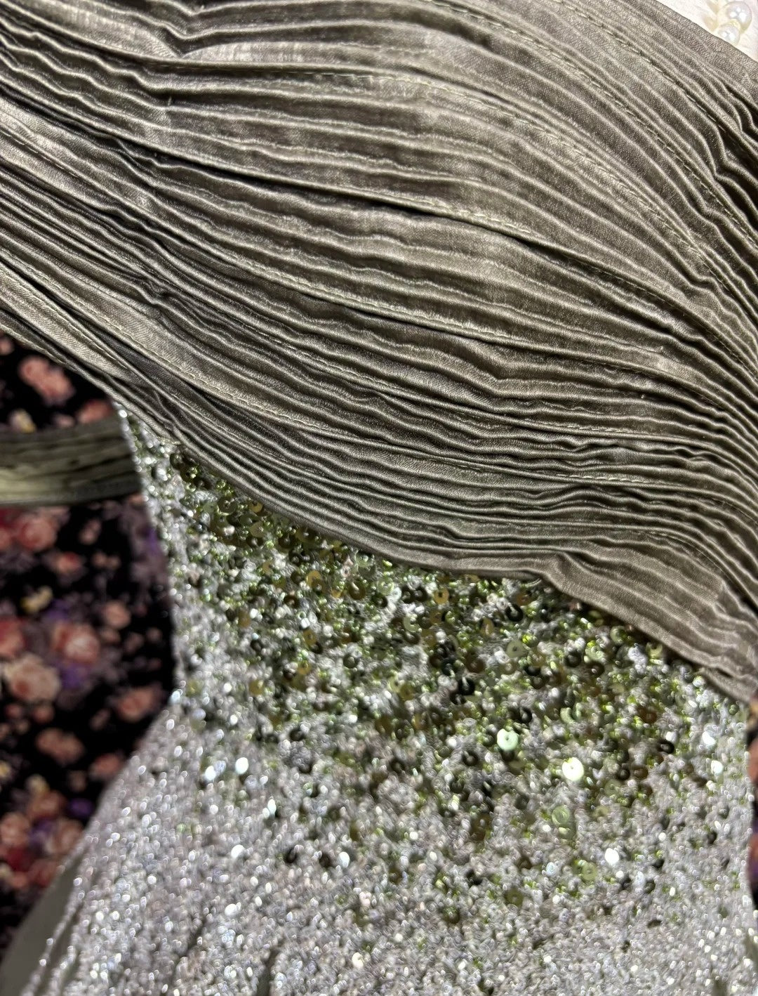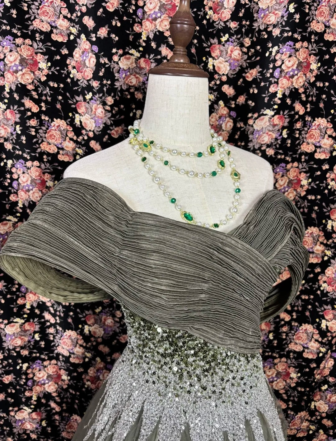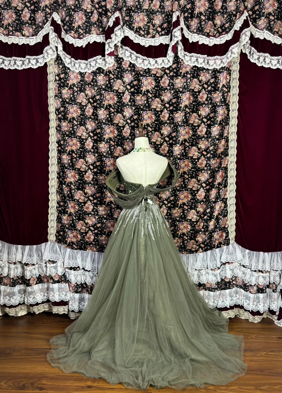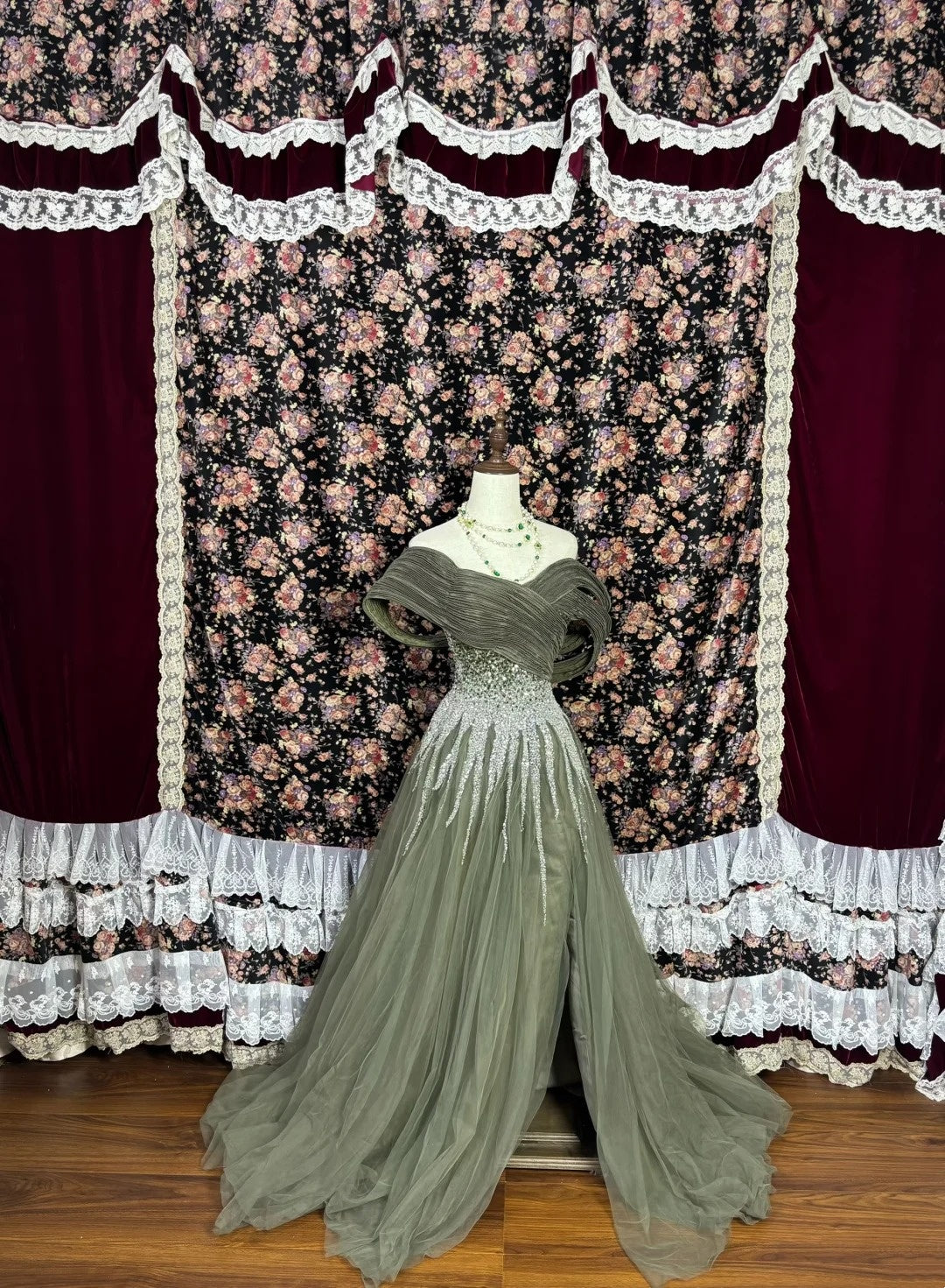 Gen Z Style Off-Shoulder A-Line Formal Dresses Sequins Beads Slit Tulle Prom Dress AP3083