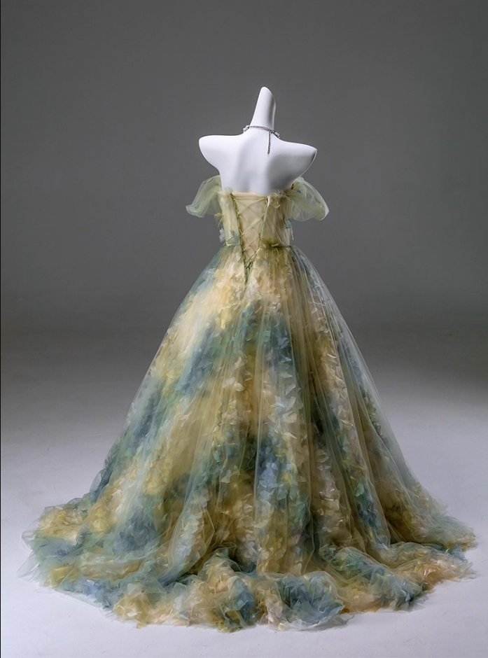 Adorable Off-Shoulder A-Line Sweet 16th Gowns Glamours Tulle 3D Appliques Beads Prom Dress AP3907