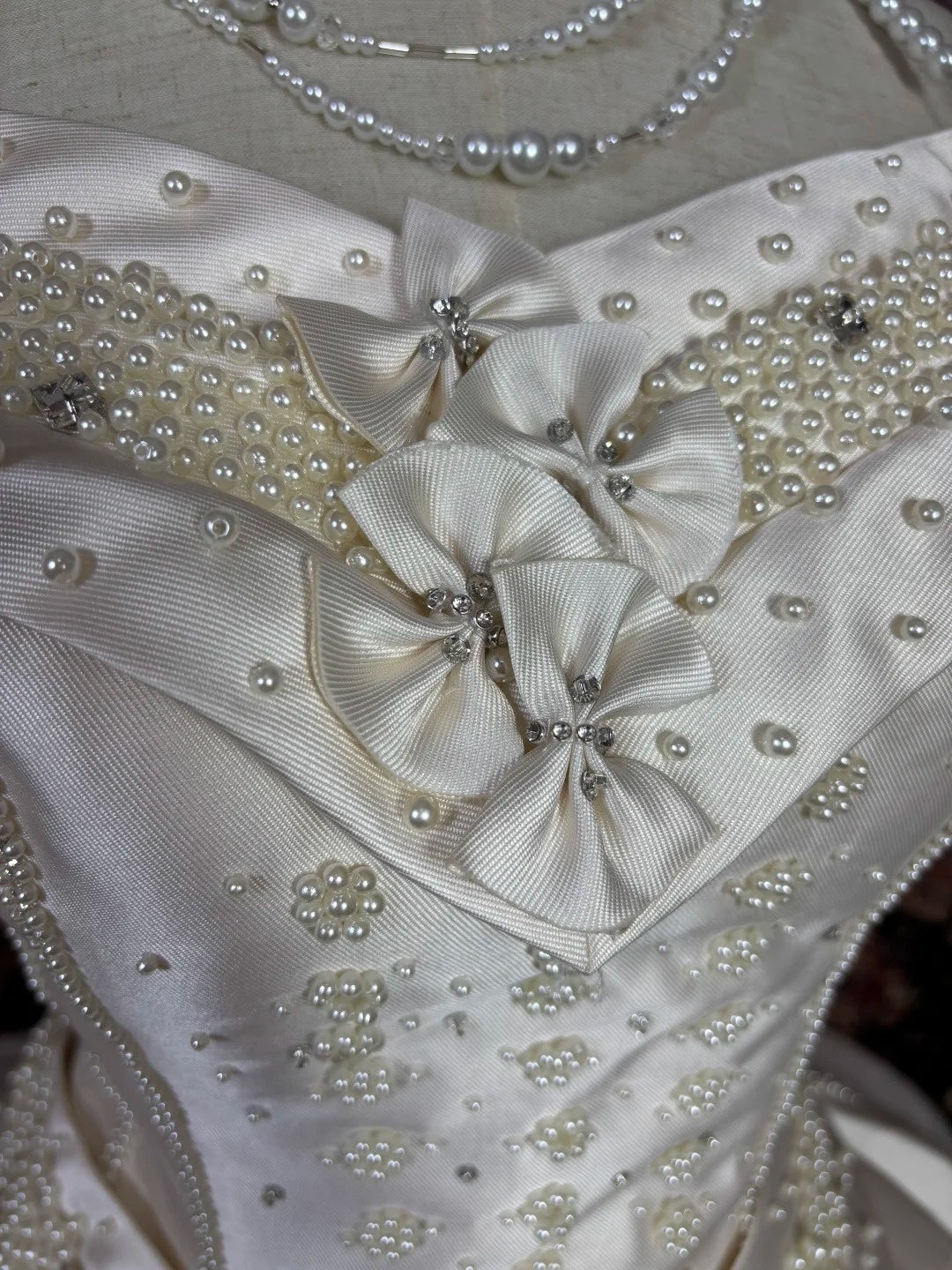 Romantic Off-Shoulder Bridal Gowns A-Line Beads Crystals Bows Wedding Dress AP3084