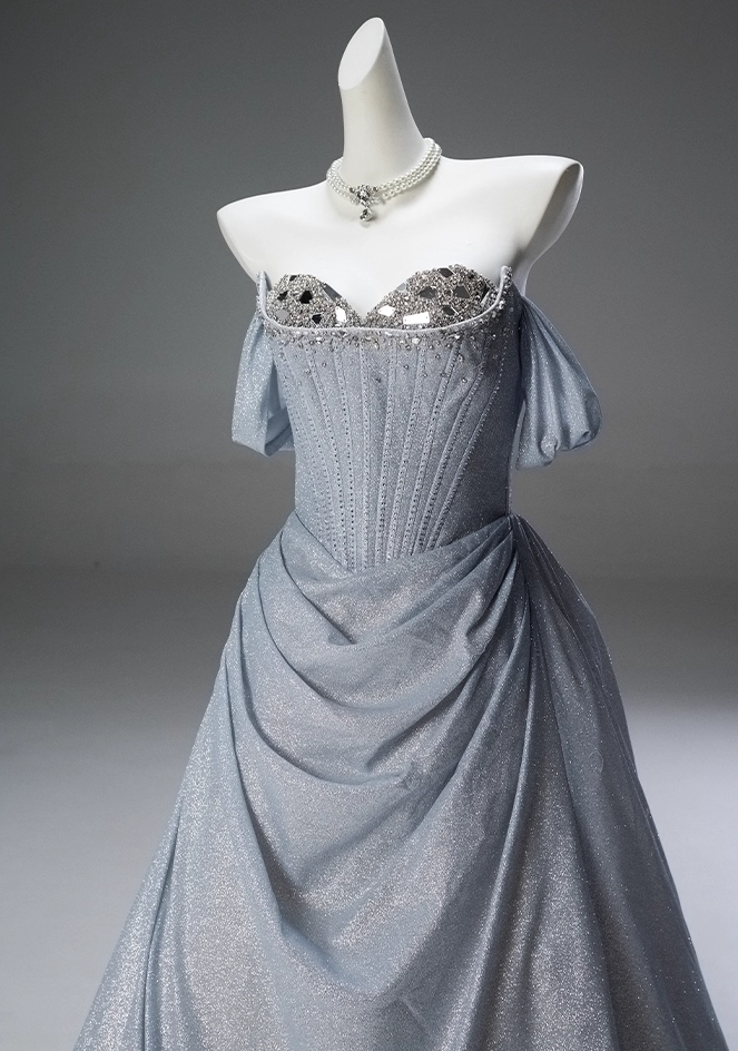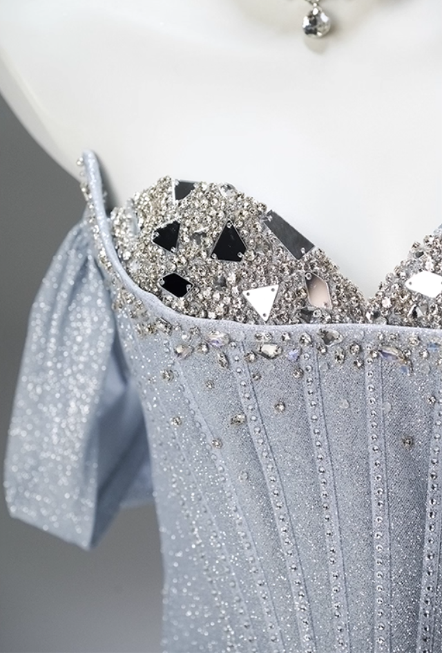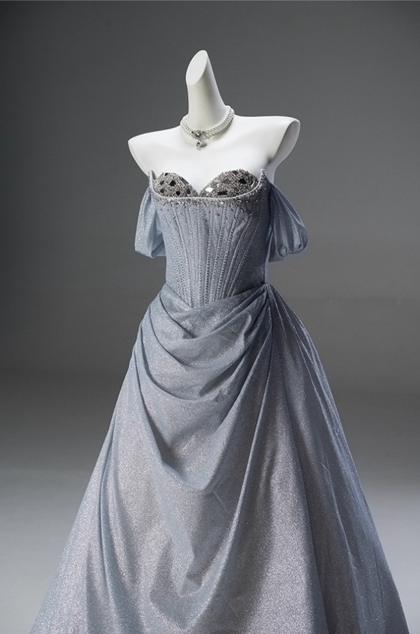 Sheen A-Line Off-Shoulder Draped Evening Dress Sequins Beads Crystals Prom Dress AP3840