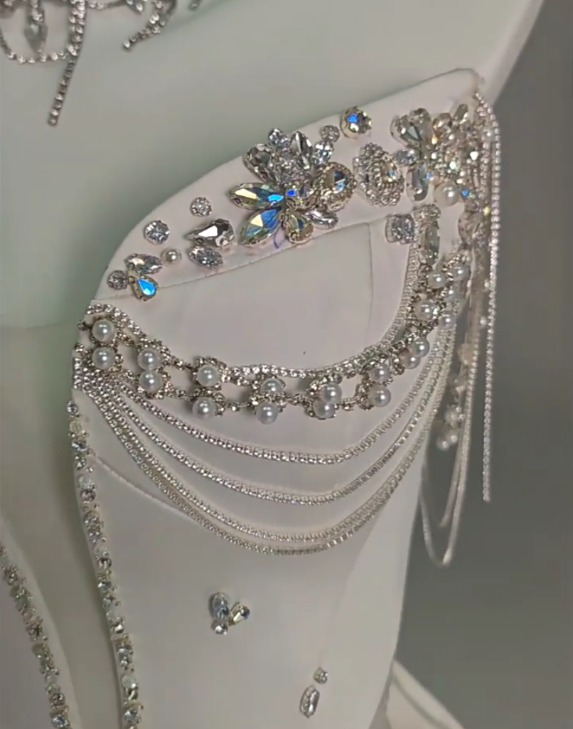 Vintage Off-Shoulder Sheath Satin Bridal Gowns Sparkly Beading Rhinestones Draped Wedding Dress AP3891