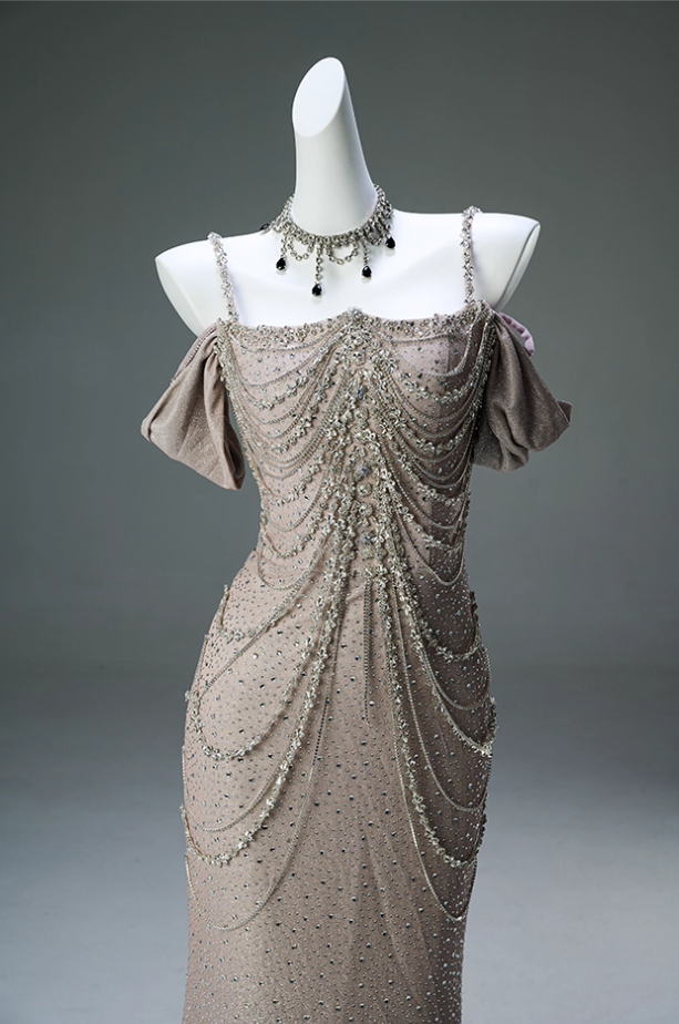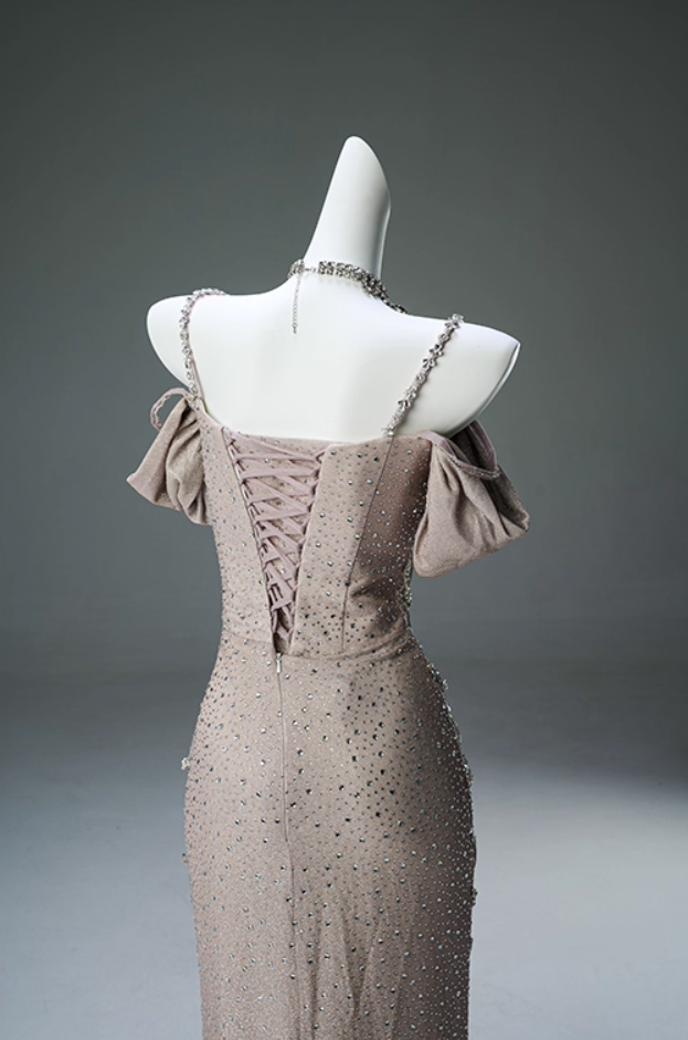 French Style Off-Shoulder Sheath Evening Gowns Sparkly Beading Rhinestones Ombre Prom Dress AP3904