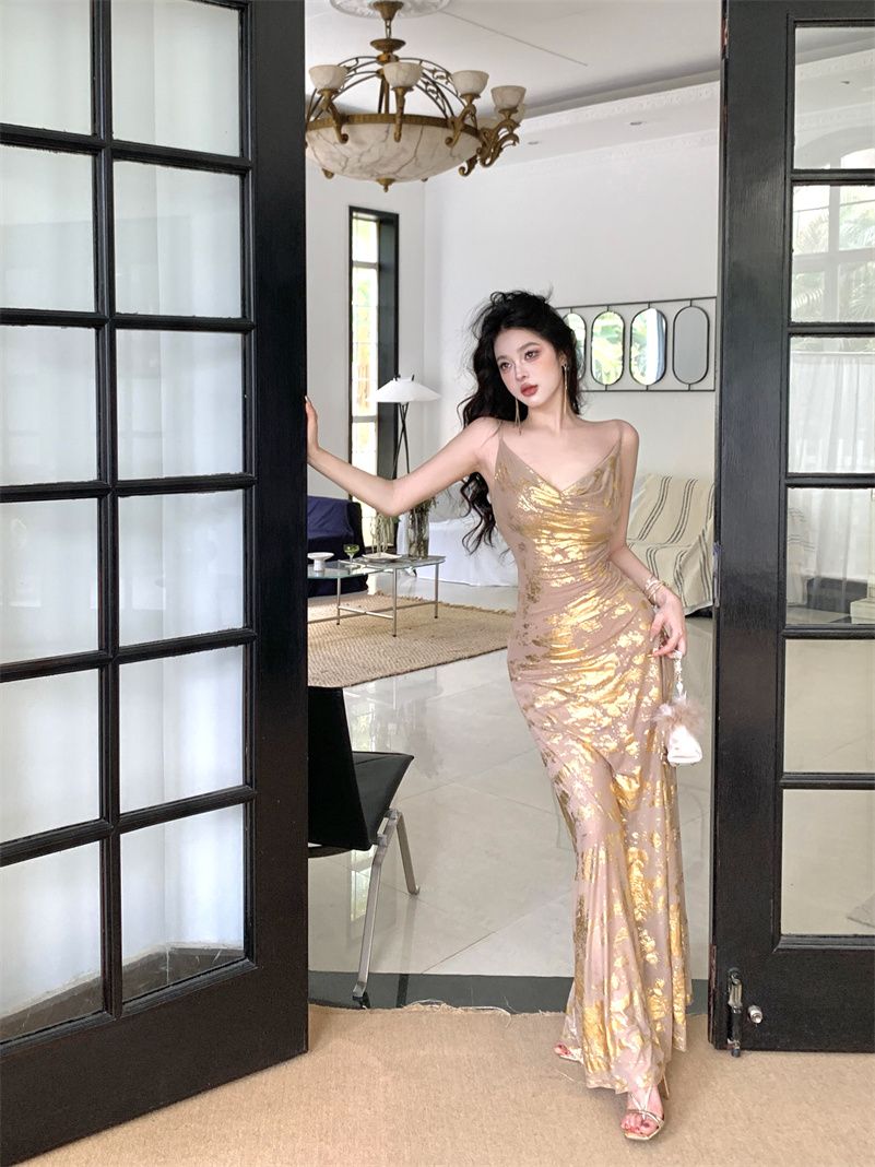 Vibrant Smooth Fabric Glow Maxi Dress Brightening Spaghetti Strap Vacation Long Dress AP0451