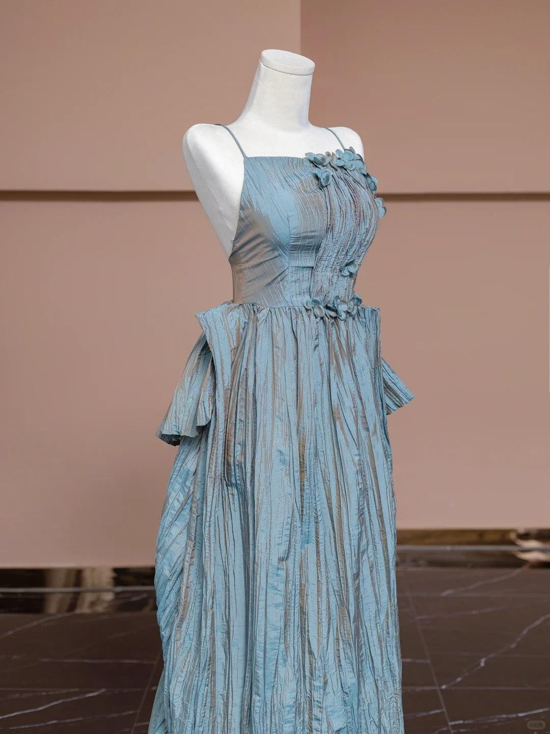 Charming A-Line Ruffle Evening Gowns Spaghetti Strap Crisscross Back Prom Dress AP2300