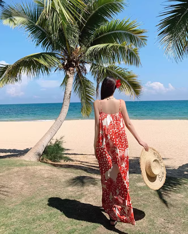 Loose Fit Flowy Floral Print Dress Spaghetti Strap Romantic Summer Long Dress AP0357
