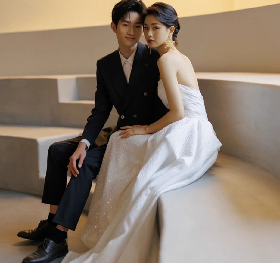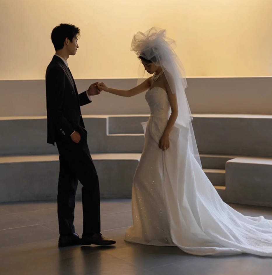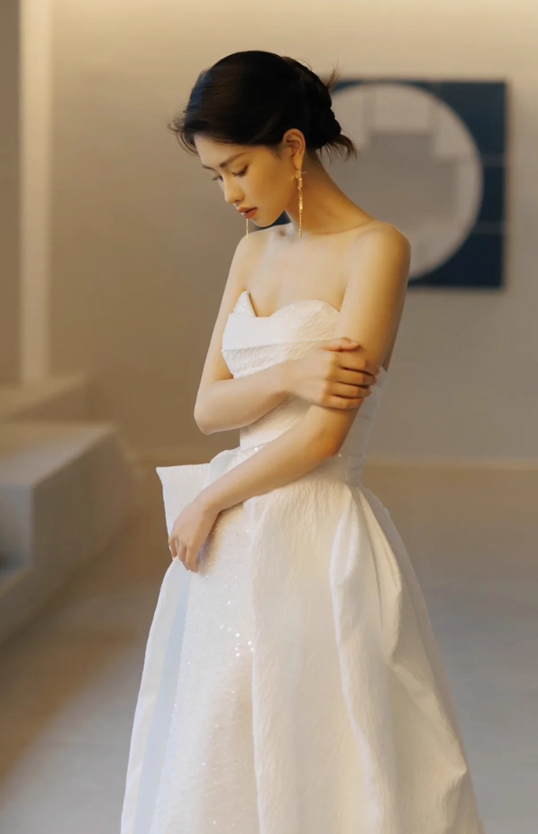 Graceful Glitter Sequins Cinched-Waist Maxi Dress Sweetheart Neck Strapless Wedding Dress AP0973