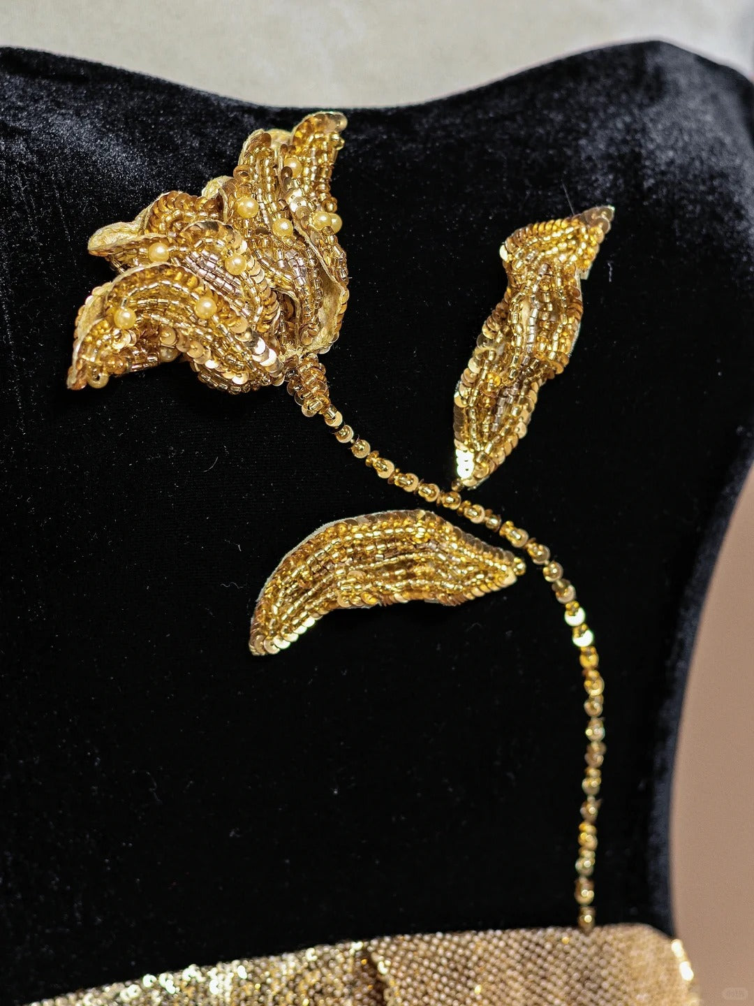 Vintage Sheath Strapless Long Evening Gowns Sequins Beading Floral Prom Dress AP2328