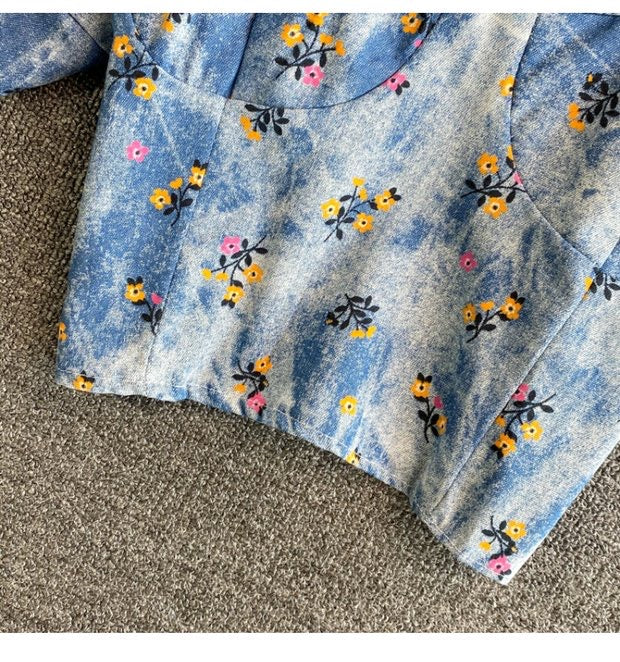 Square Collar Bubble Sleeve Top,broken Denim Shirts, Temperament, Chic Short Top AP000199