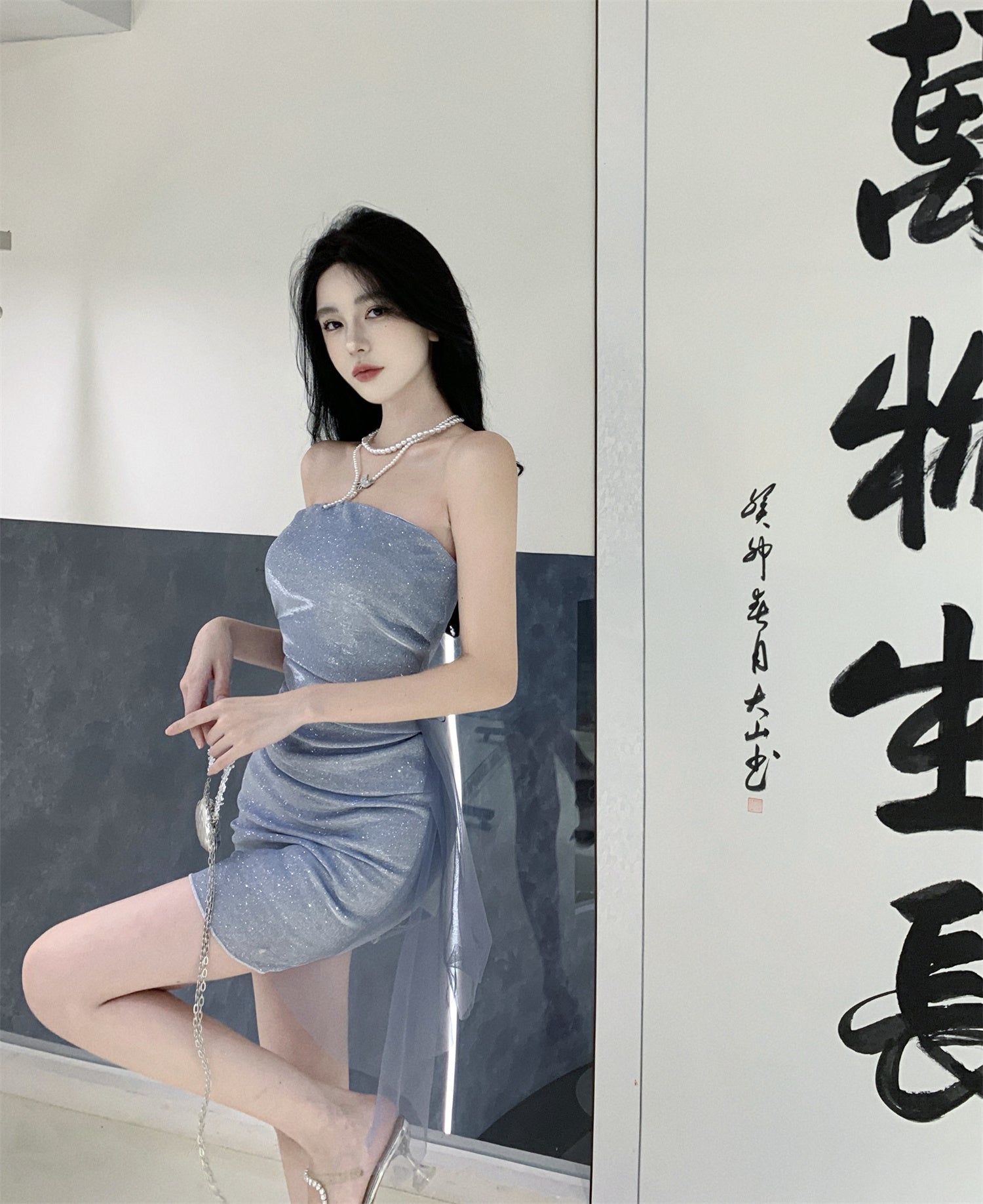 Simple Style Sleeveless Summer Skirt Strapless Glow Fabric Party Bodycon Short Dress AP0469