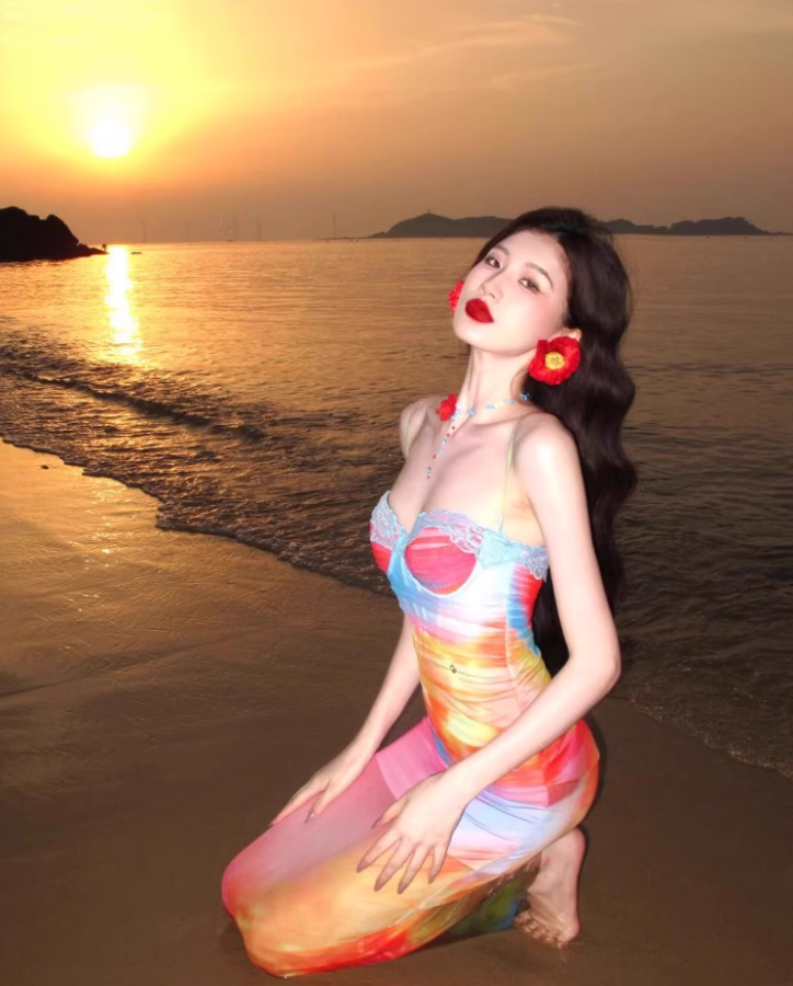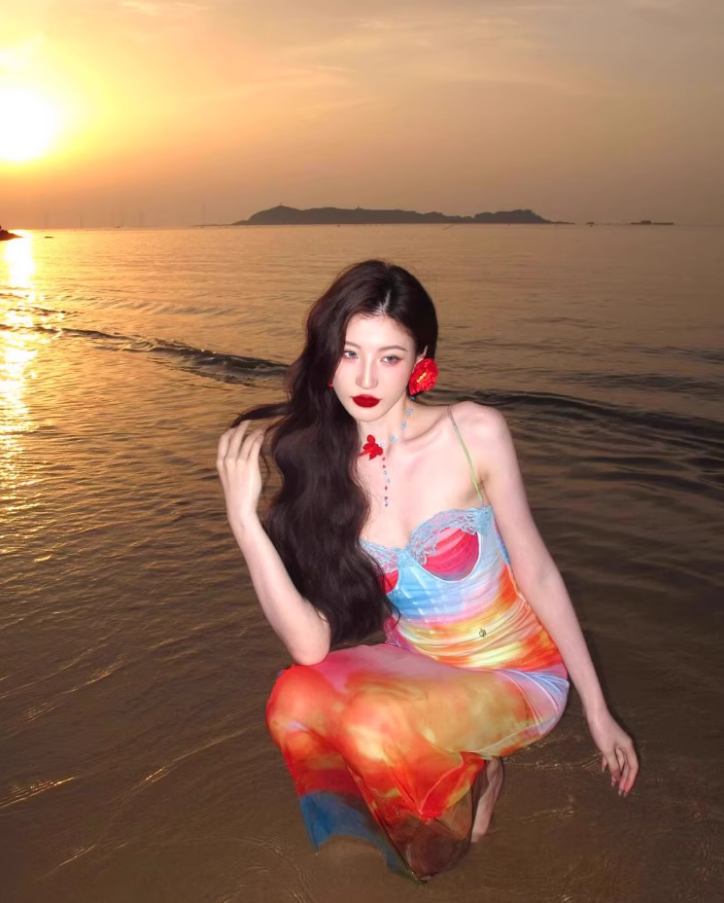 Dopamine Brightening Mesh Overlay Maxi Dress Chic Tie-Dye Ombre Coastal Shoots Mermaid Long Dress AP1387