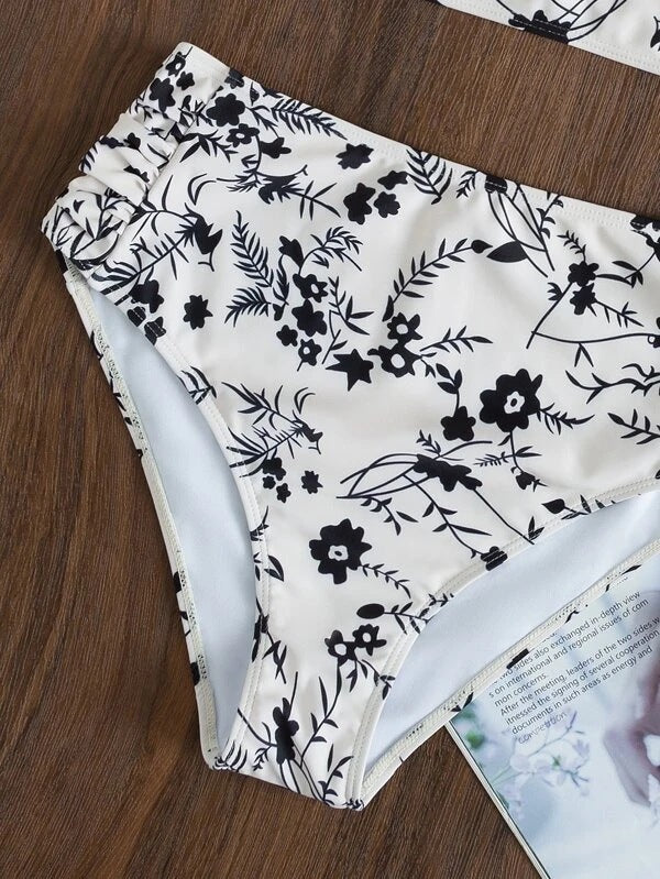 Split Print High Waisted Sexy Bikini Swimsuit Girl Small Chest Gathering AP000117
